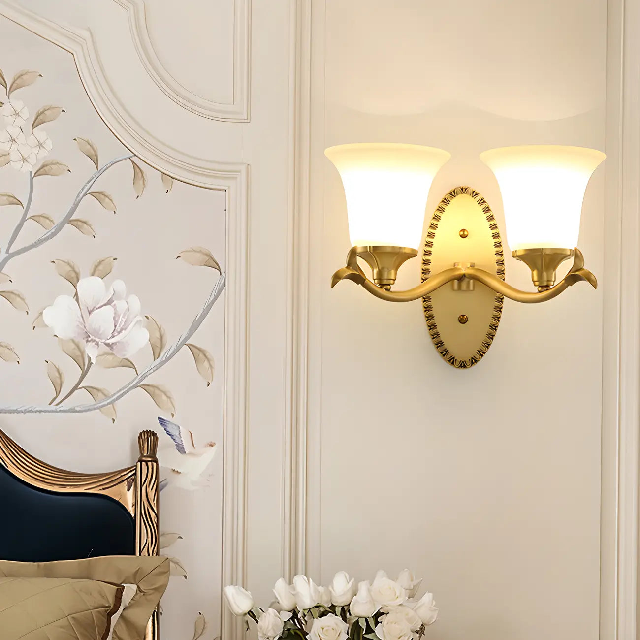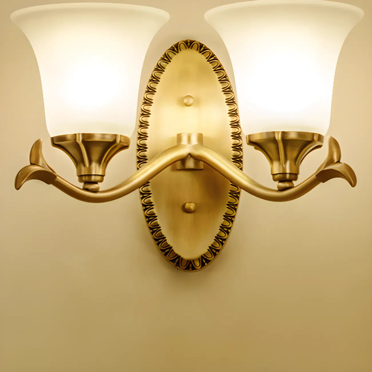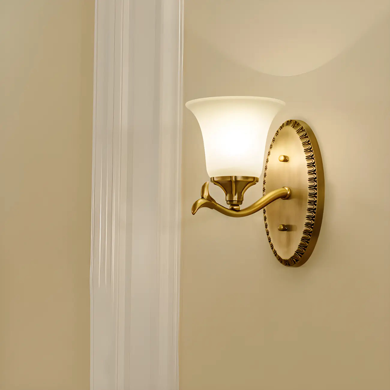 Applique murale en laiton de 25 à 35 cm avec abat-jour en verre pour chambre à coucher