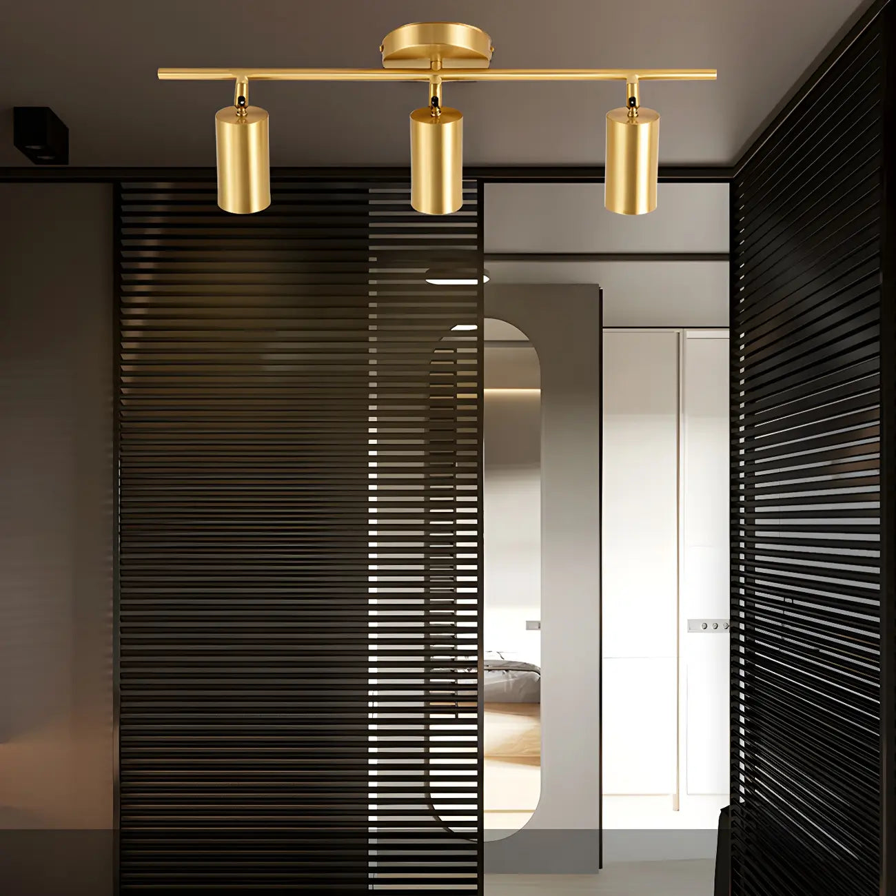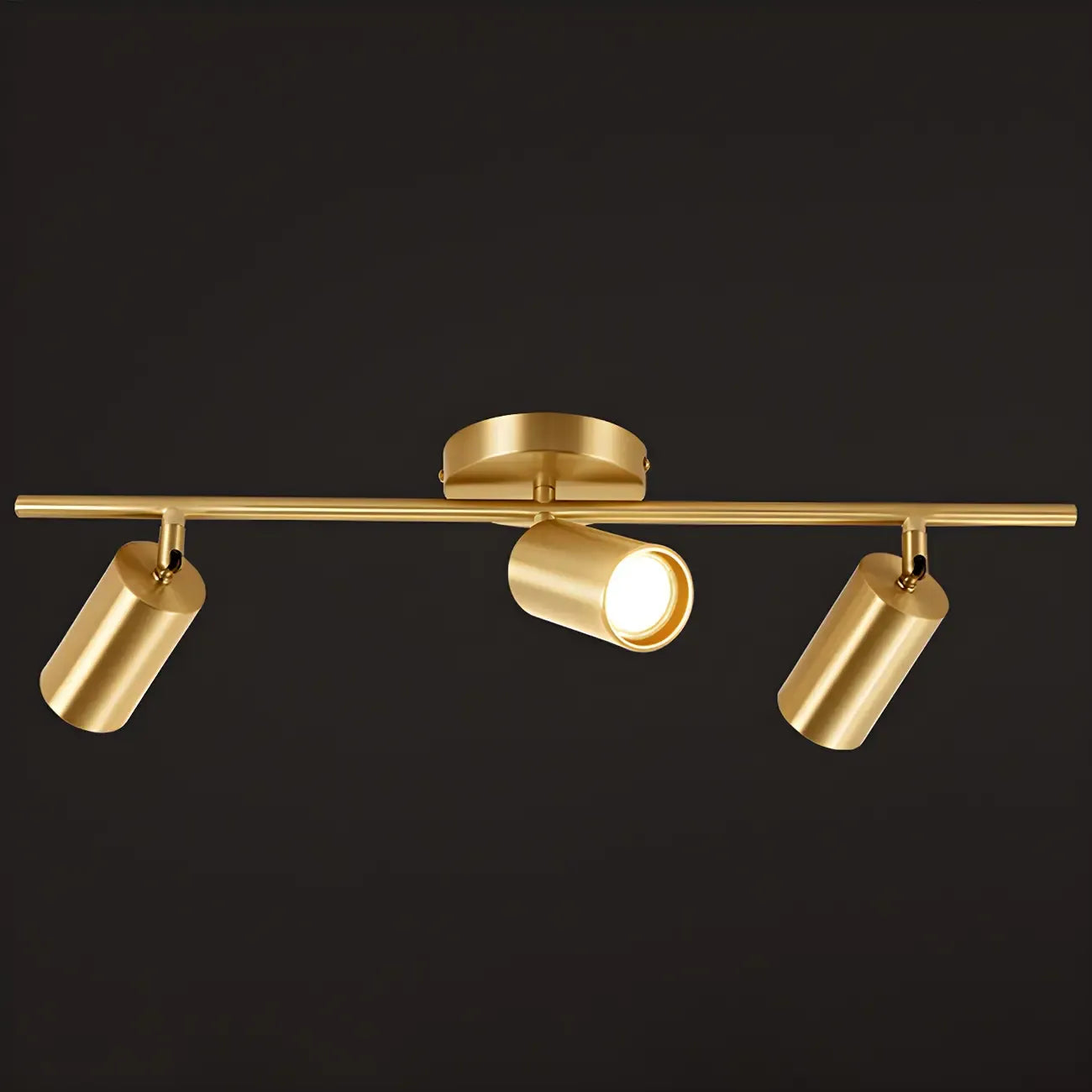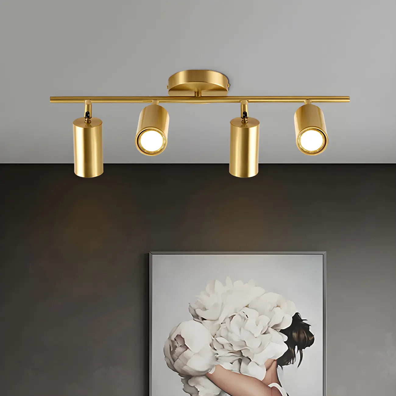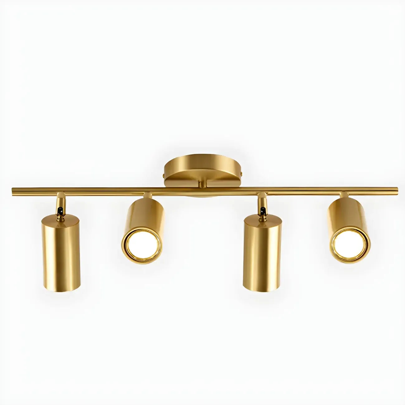 4 spots lumineux dorés sur rail avec têtes orientables