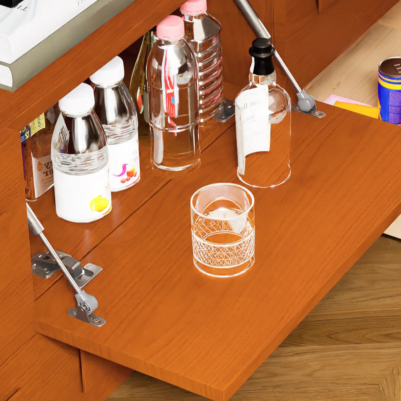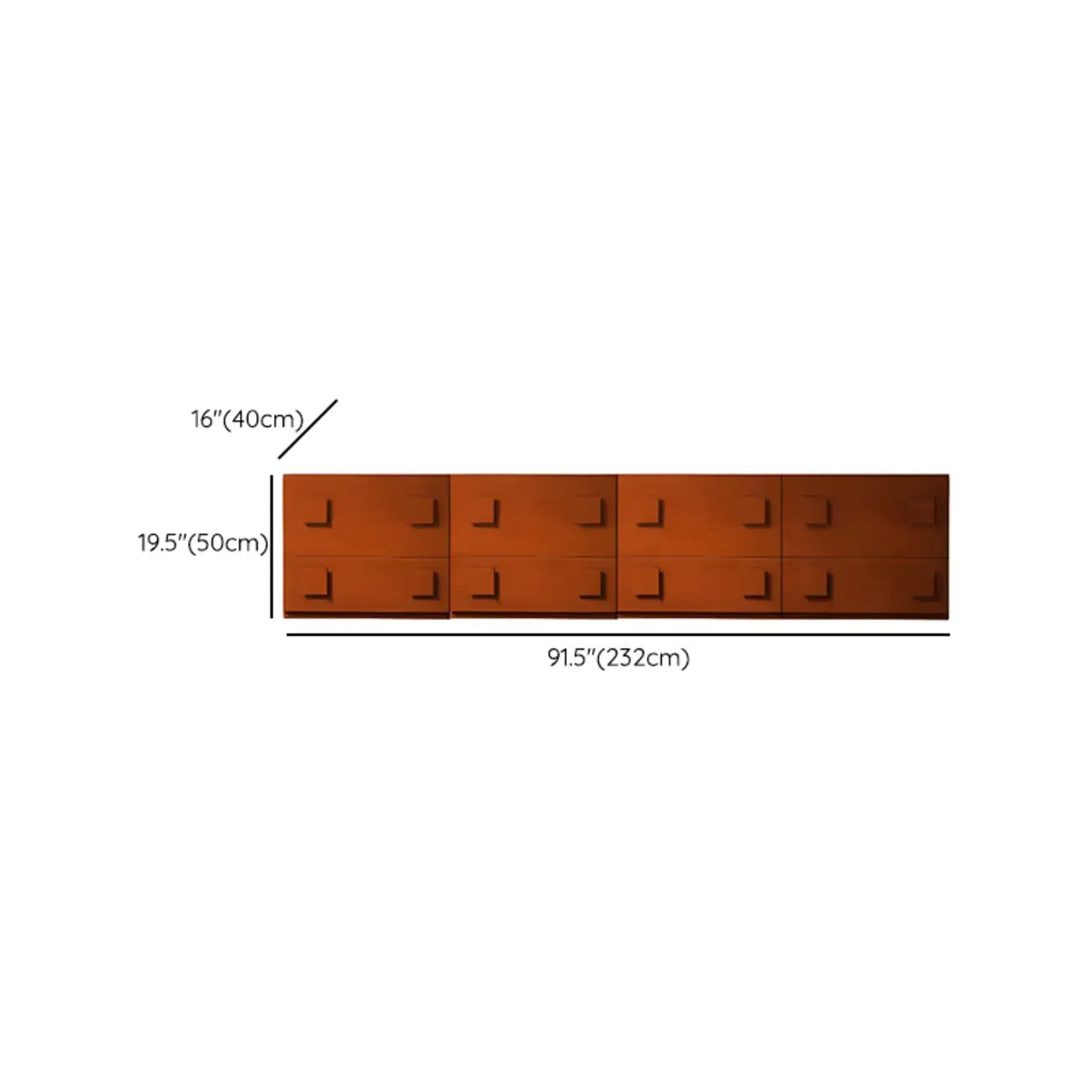 Meuble TV long en pin brun style milieu du siècle avec tiroirs (91)