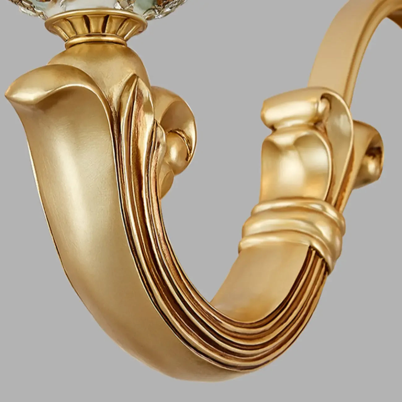 Lustre antique en céramique dorée avec cloche en verre dépoli