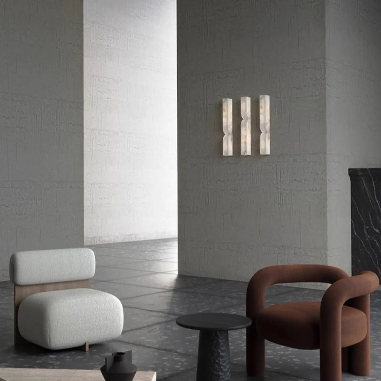 Applique murale Art Déco à 2 lumières incurvée en albâtre massif