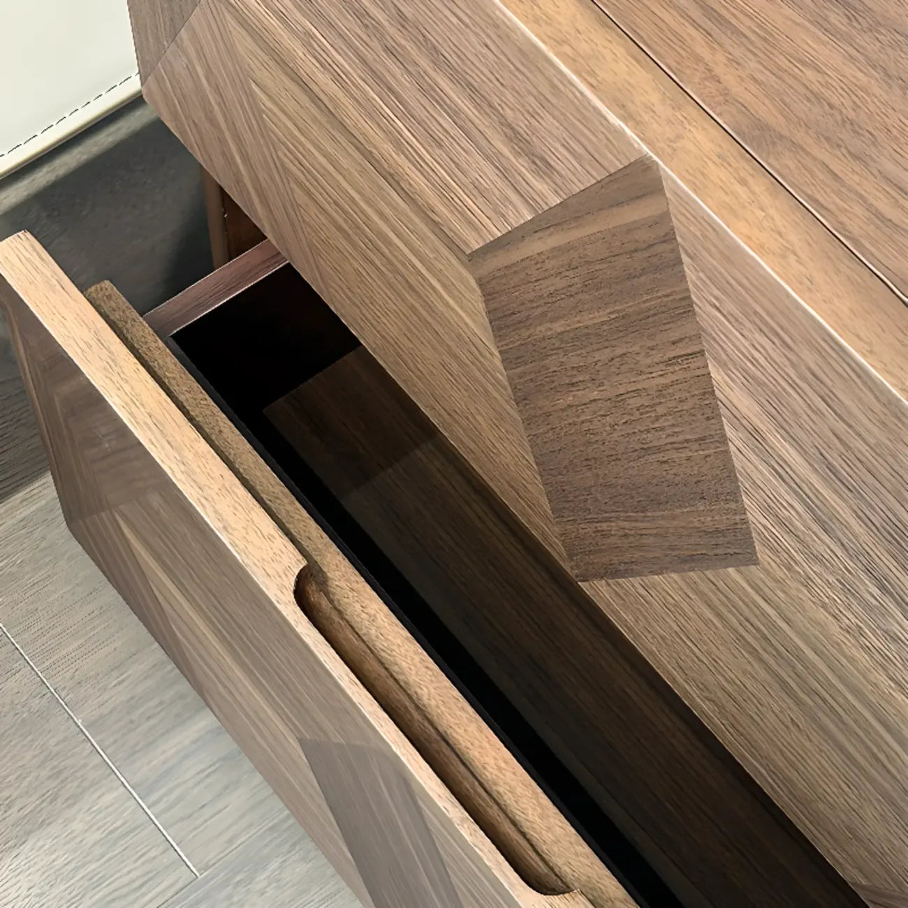 Table de chevet étroite élégante en bois brun noyer à 2 tiroirs