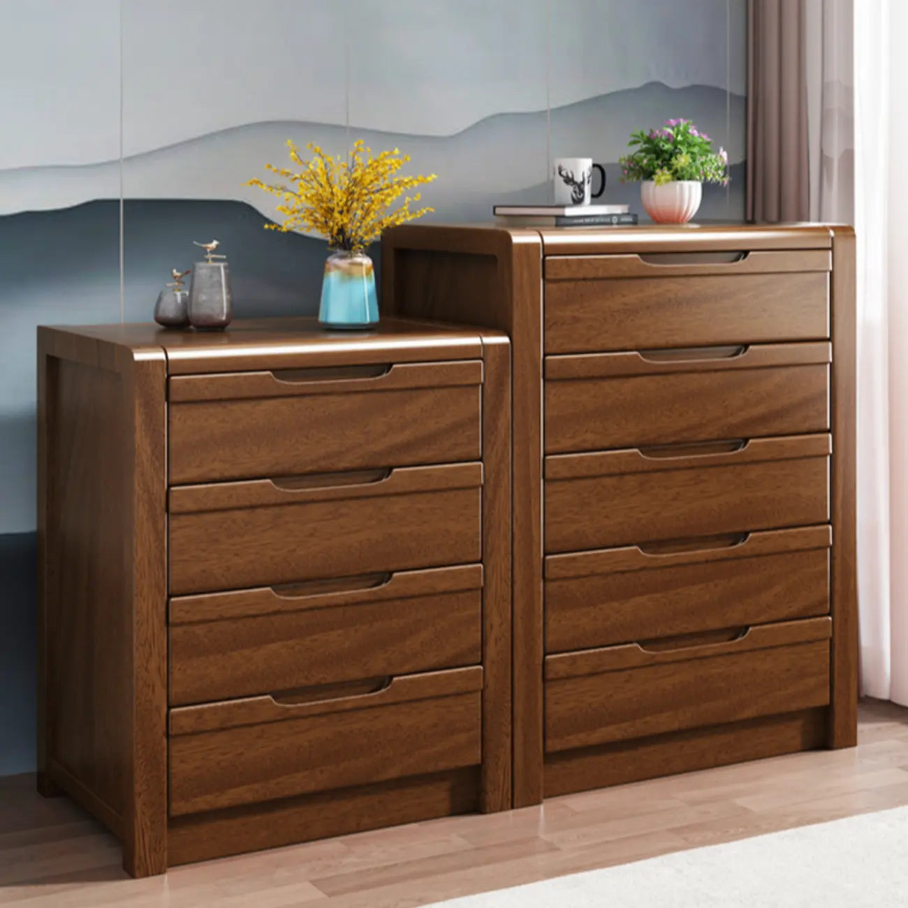 Meuble indépendant en bois massif brun de style milieu du siècle avec tiroirs