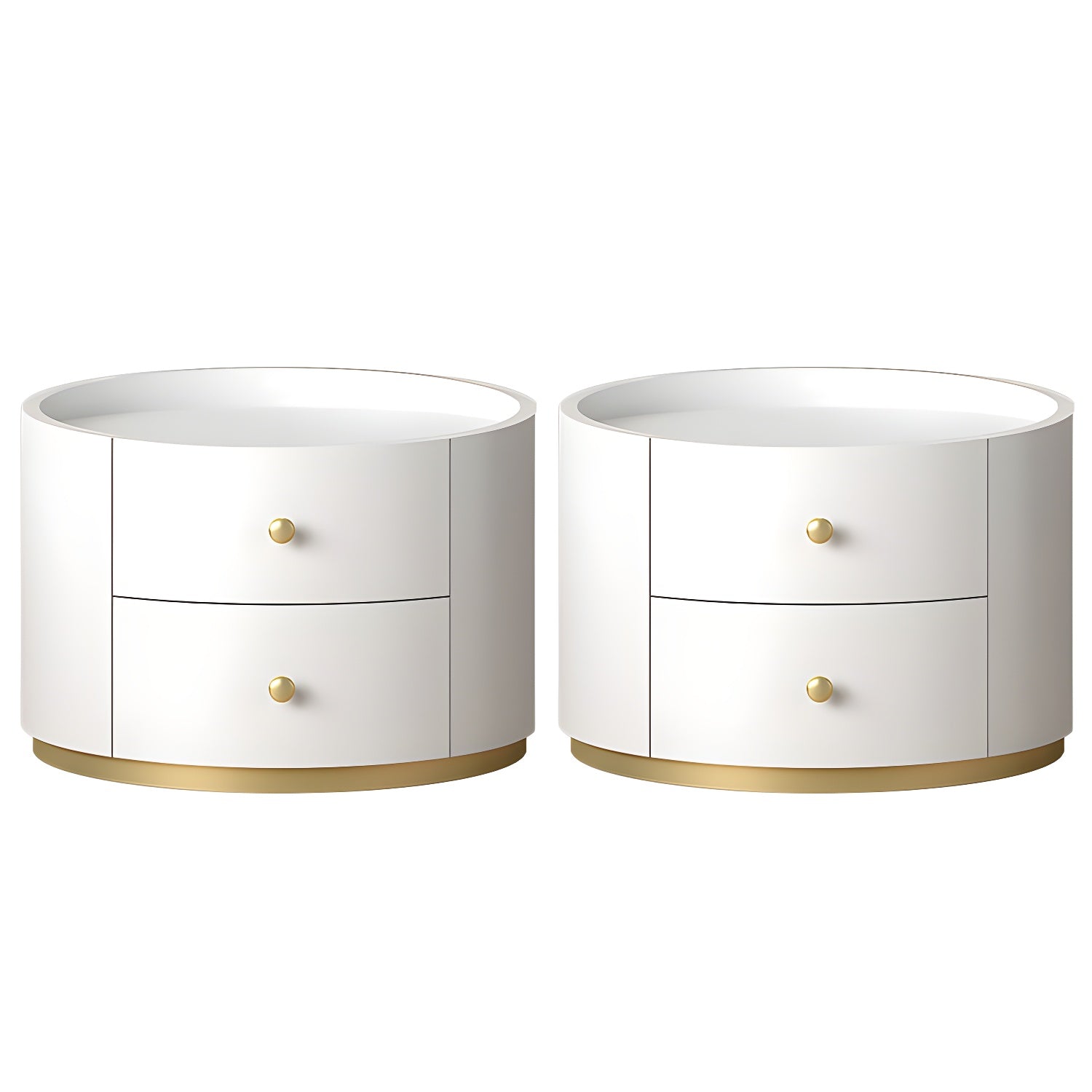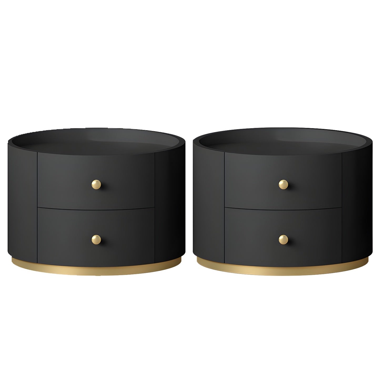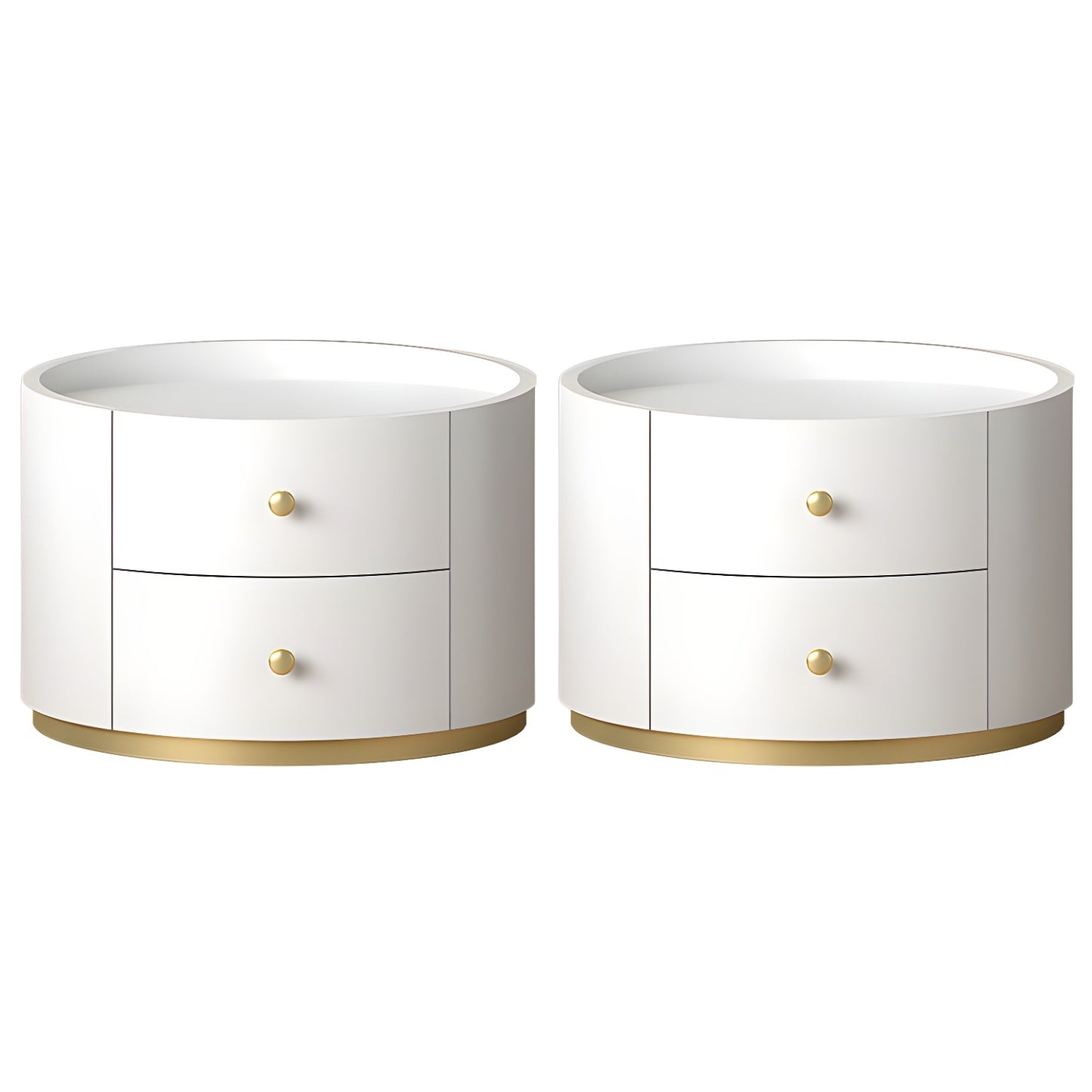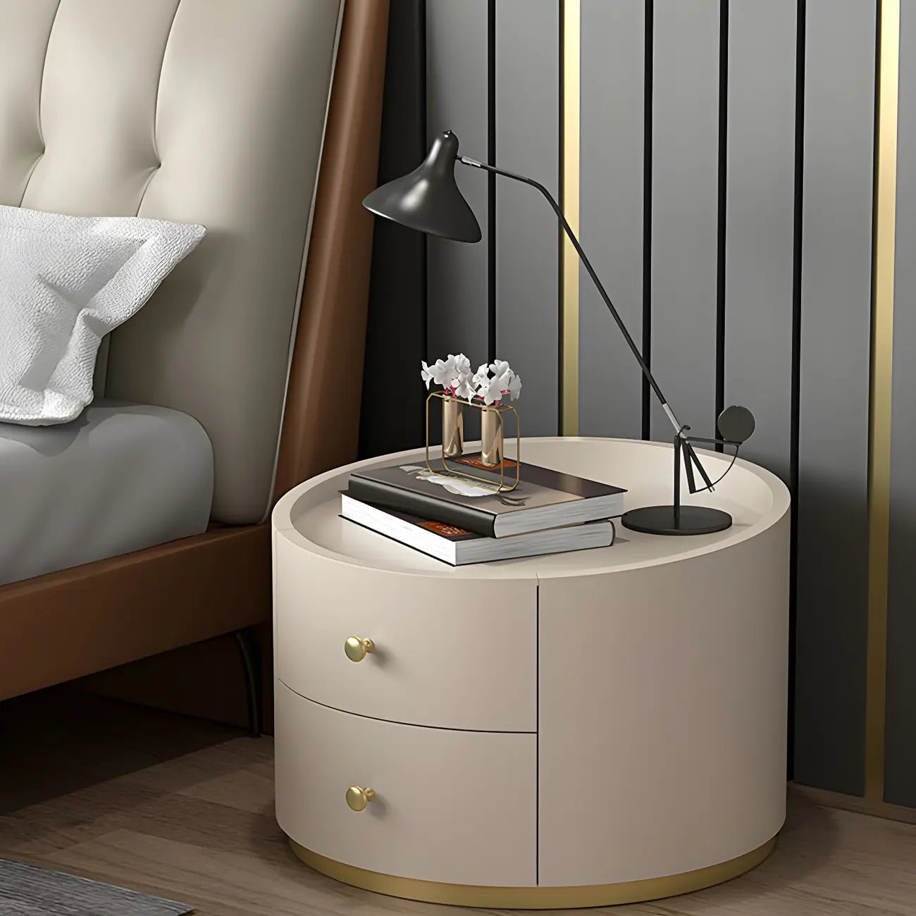Table de chevet ronde Glam en bois manufacturé à 2 tiroirs