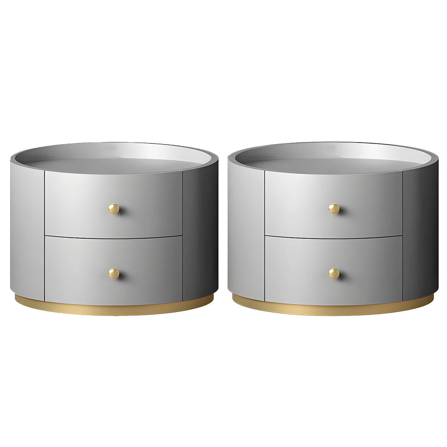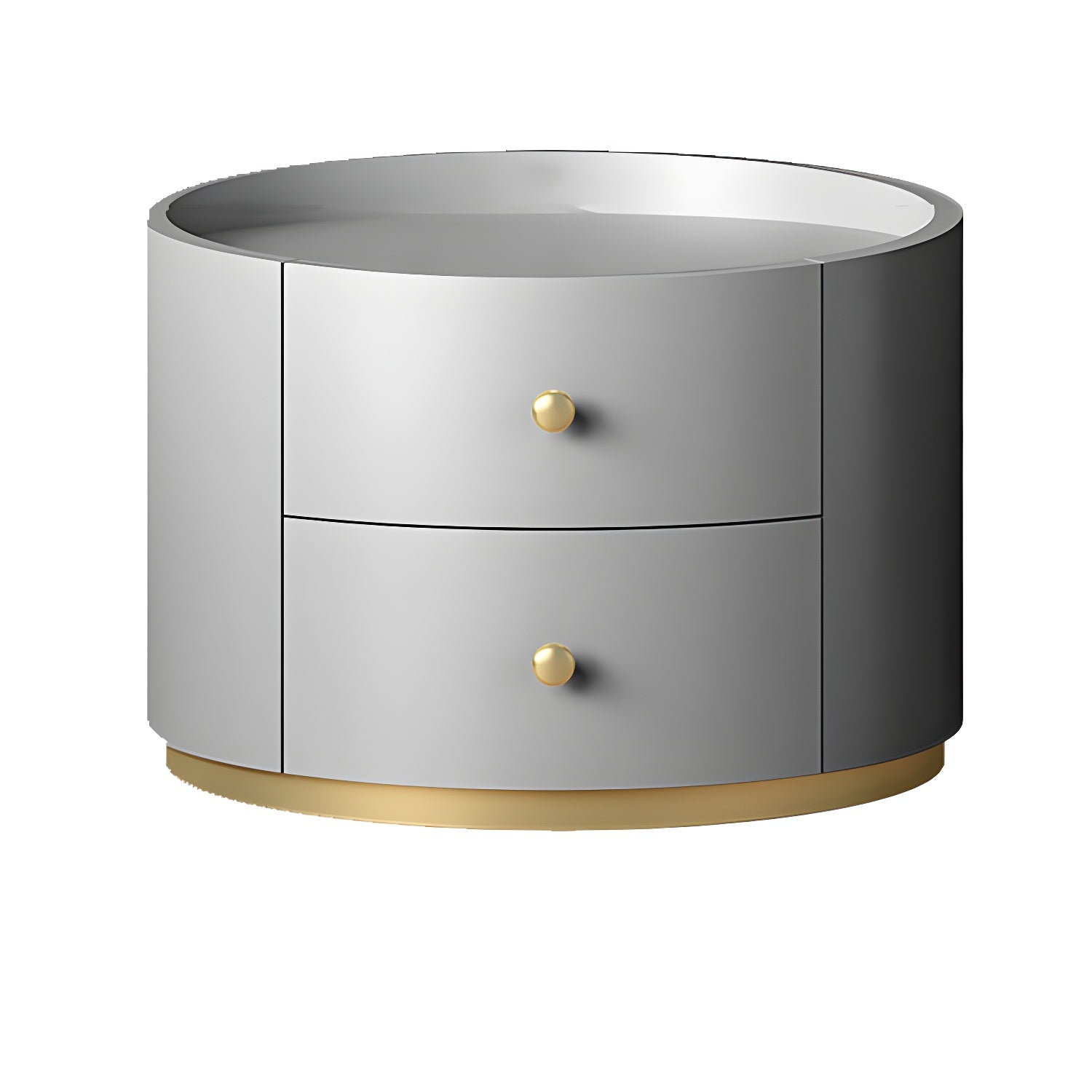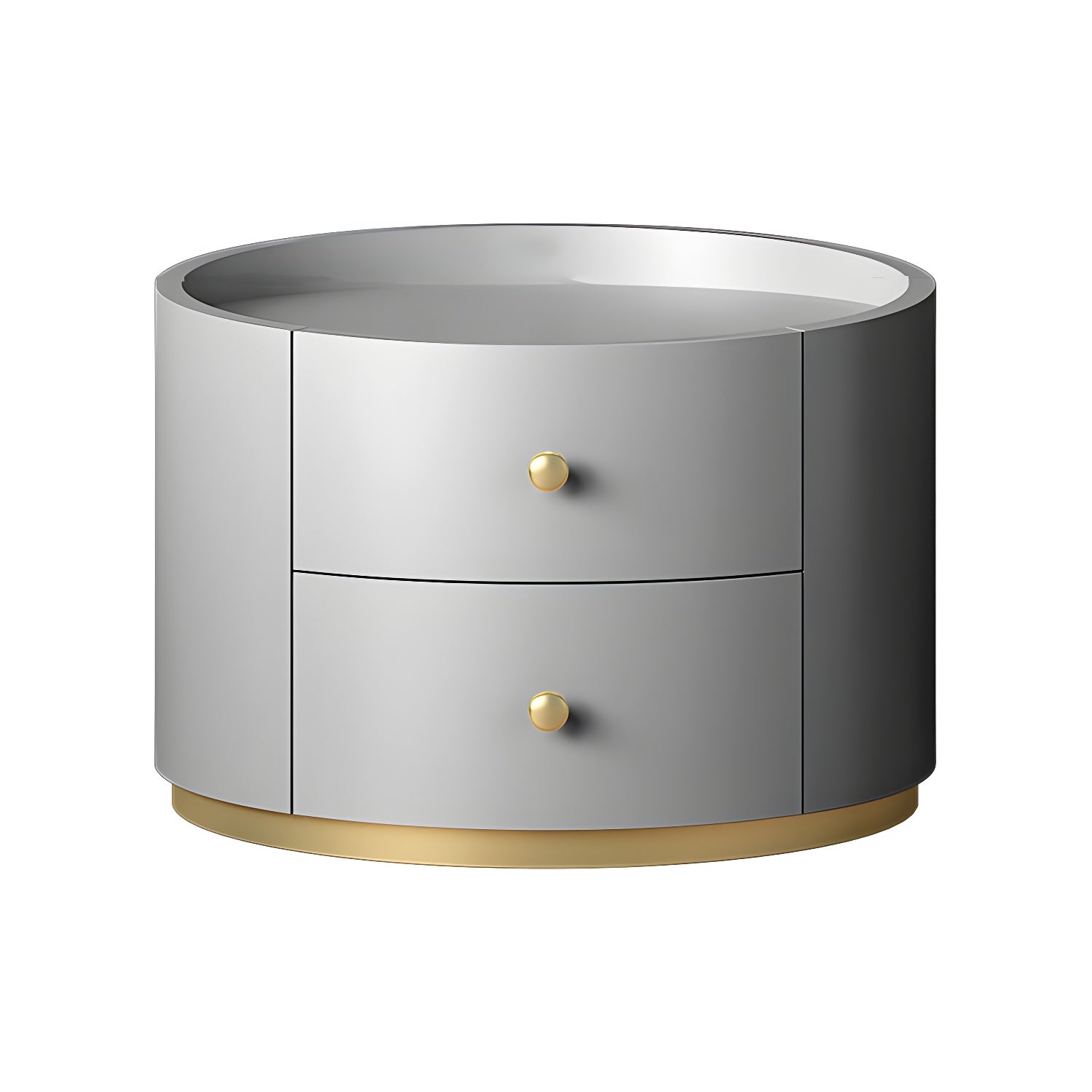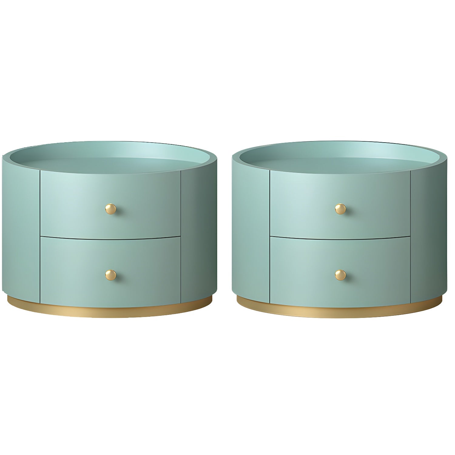 Table de chevet ronde Glam en bois manufacturé à 2 tiroirs