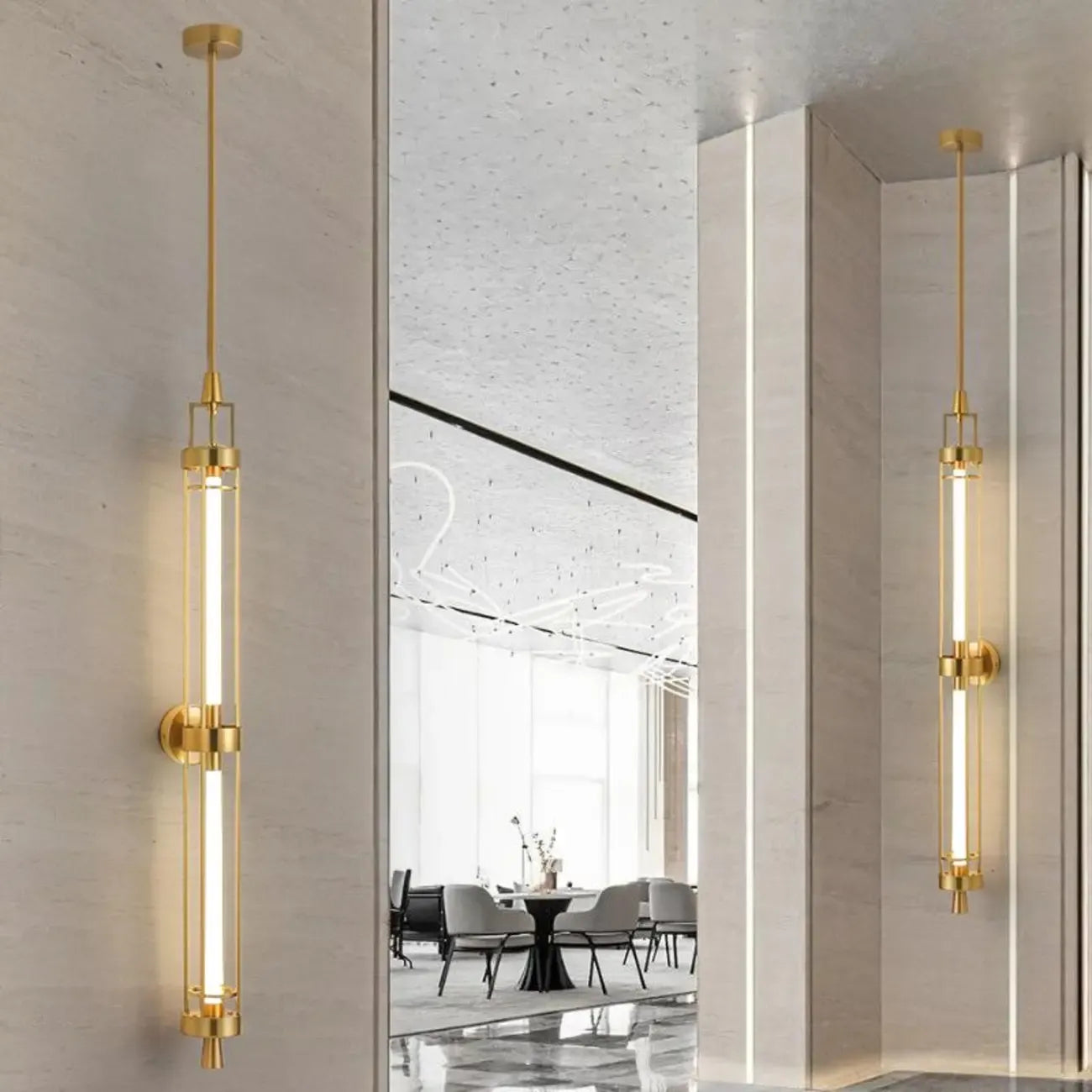 Applique murale cylindrique dorée avec 2 ampoules LED à lumière chaude