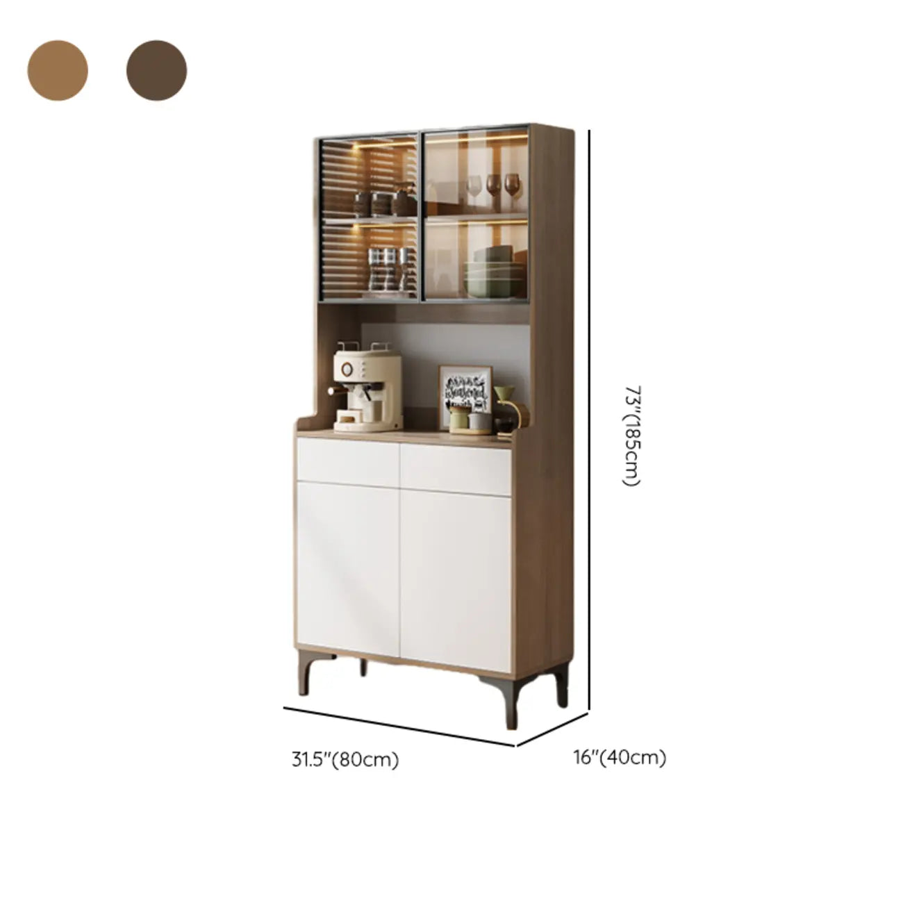 Grand buffet en bois avec portes vitrées et étagère supérieure