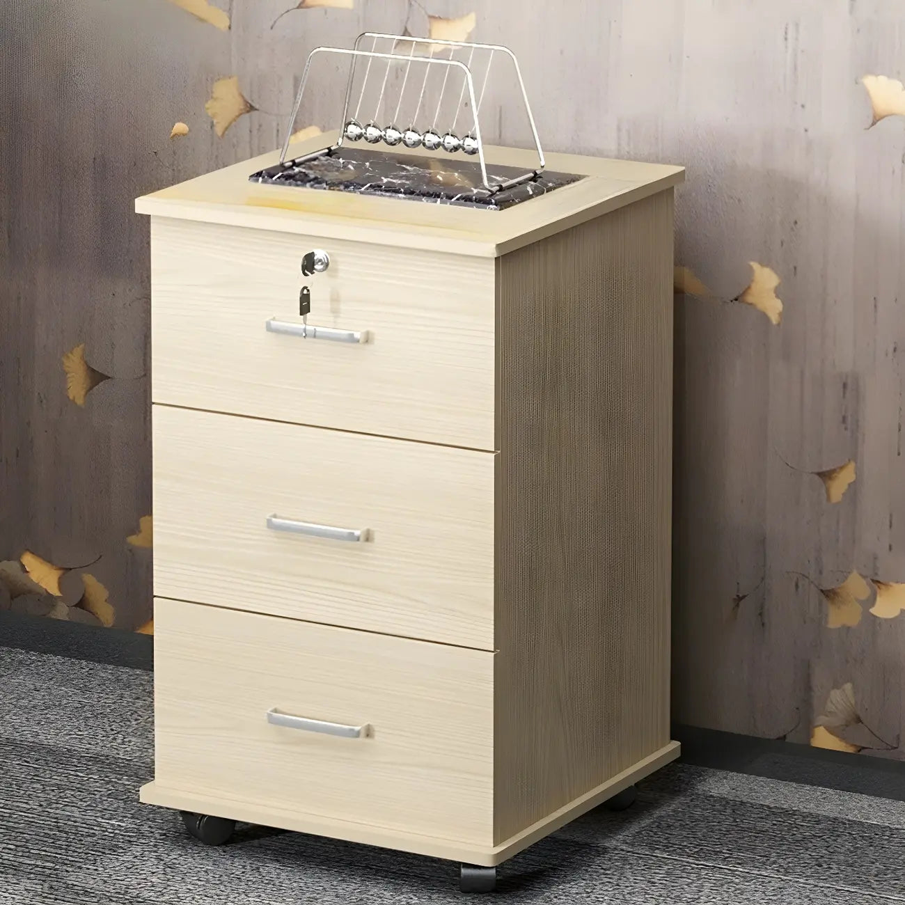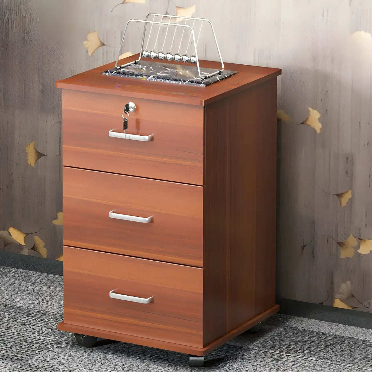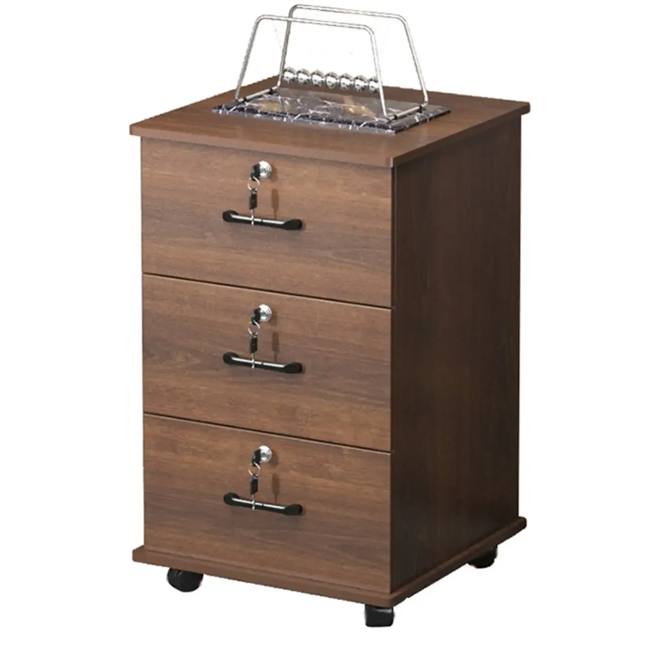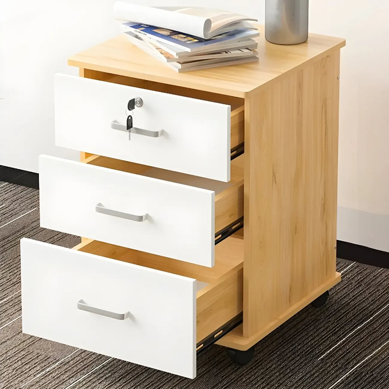 Classeur mobile Lokable en bois brun et blanc à 3 tiroirs