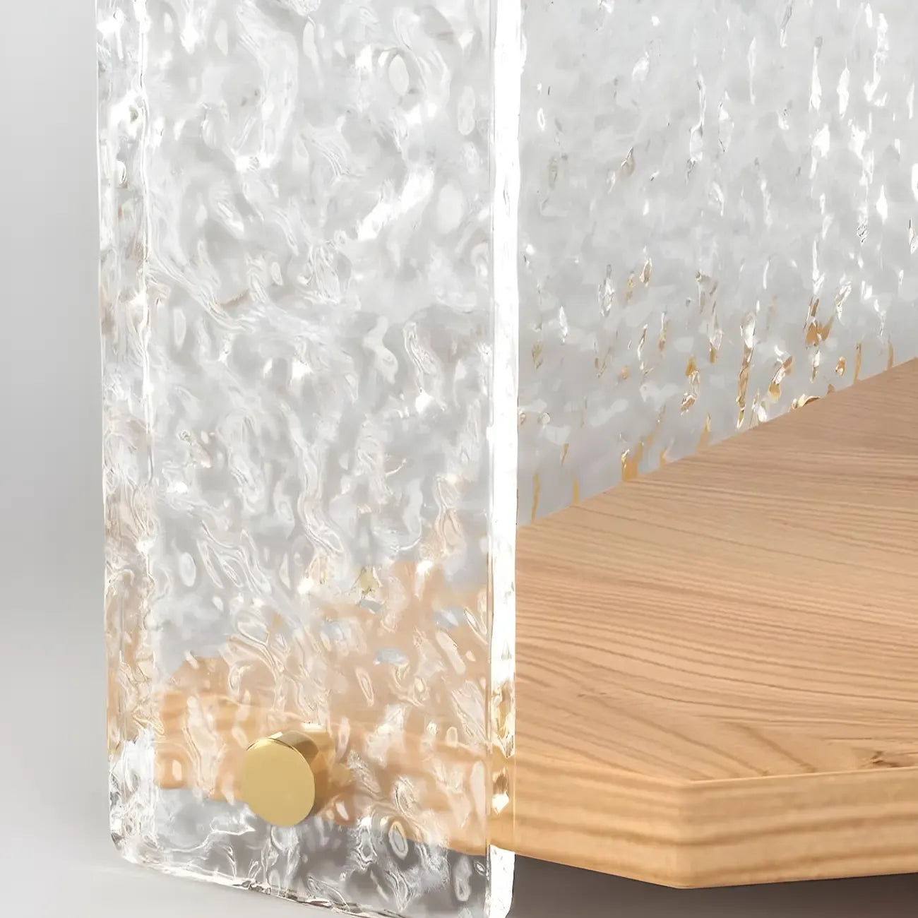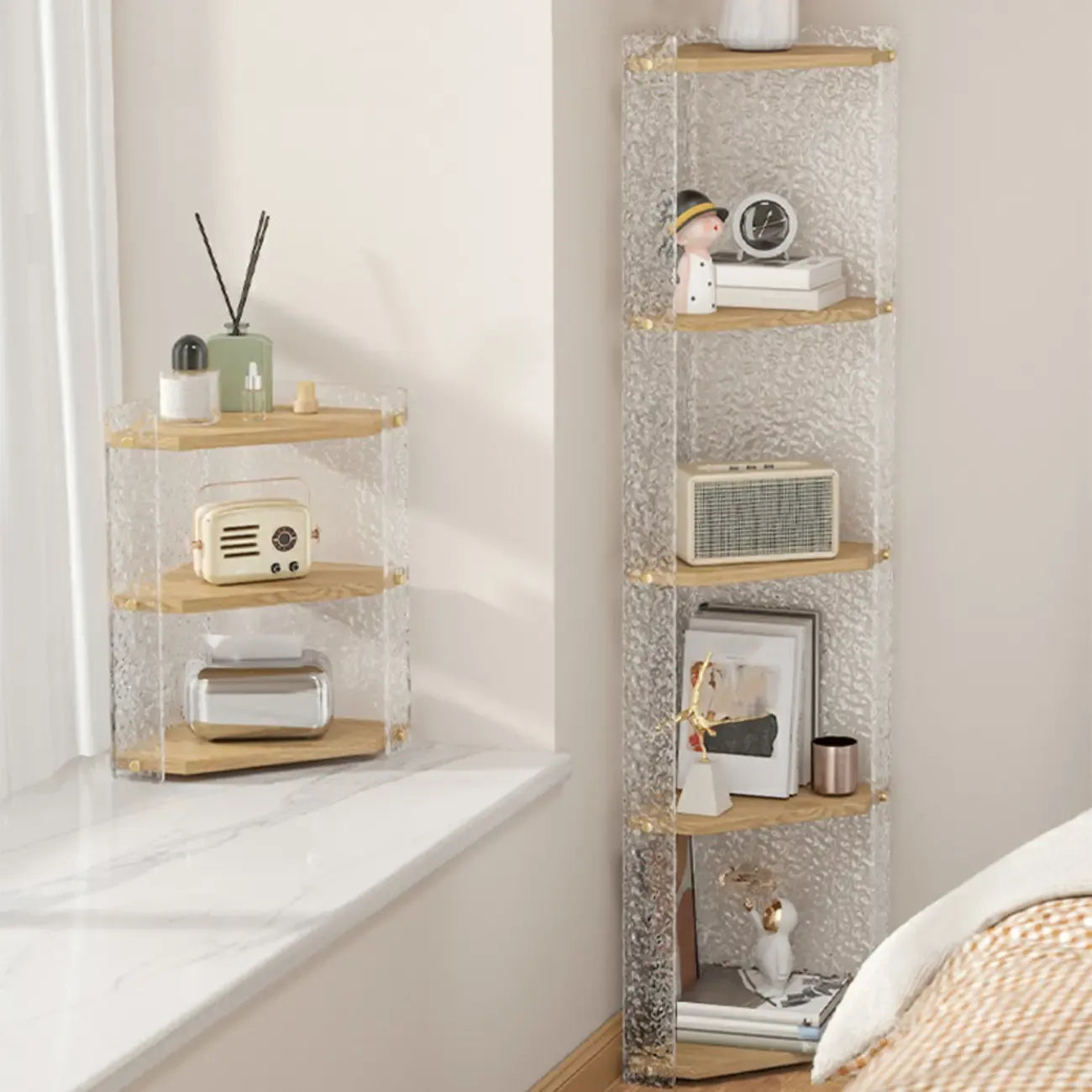 Meuble d'angle moderne avec étagères ouvertes en acrylique et bois naturel