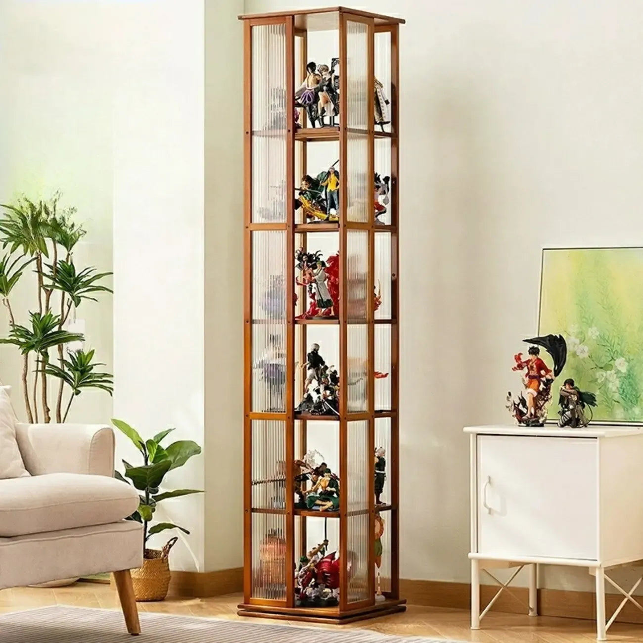 Vitrine ouverte haute et étroite en bambou noir moderne