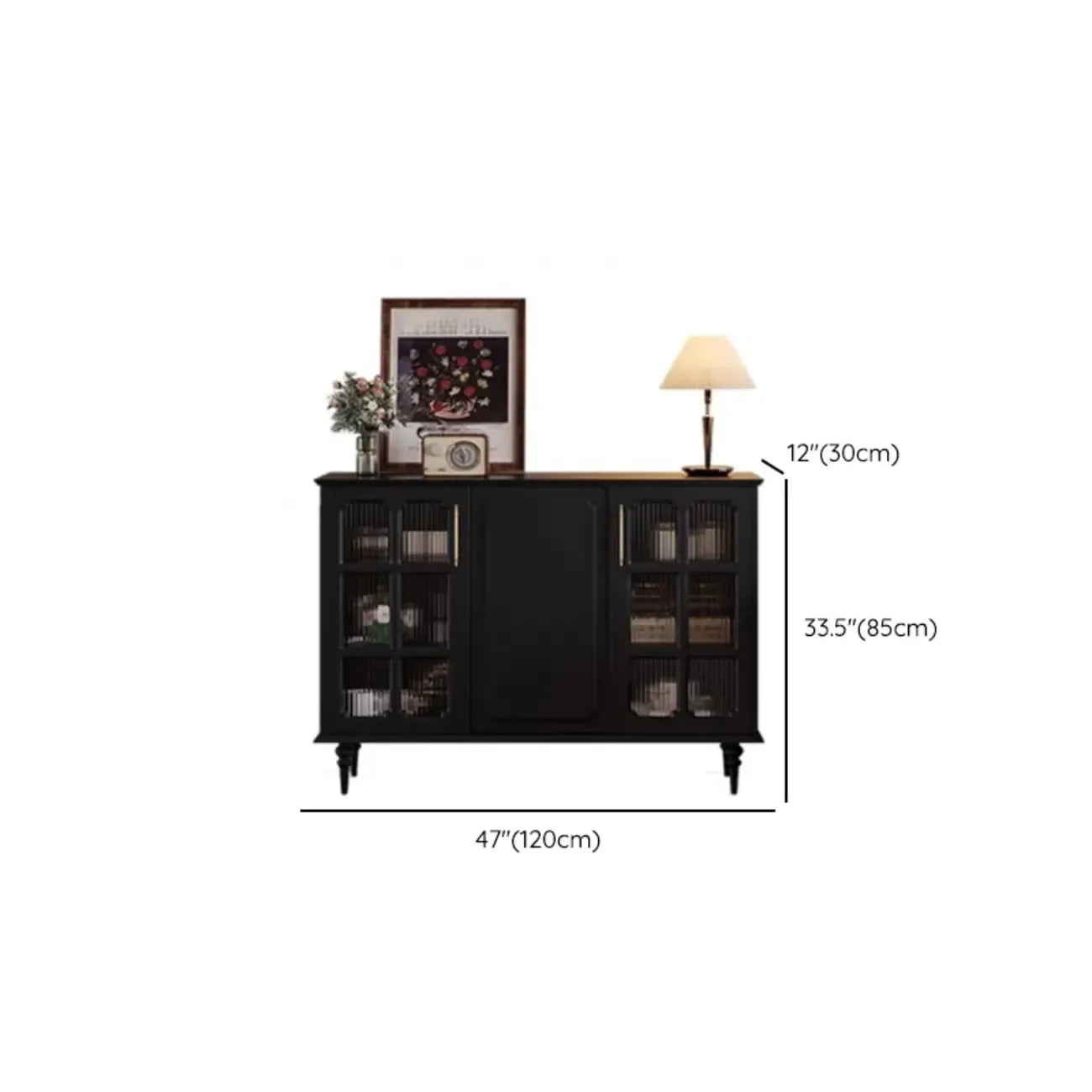 Meuble de rangement moderne en bois noir et verre cannelé pour salon