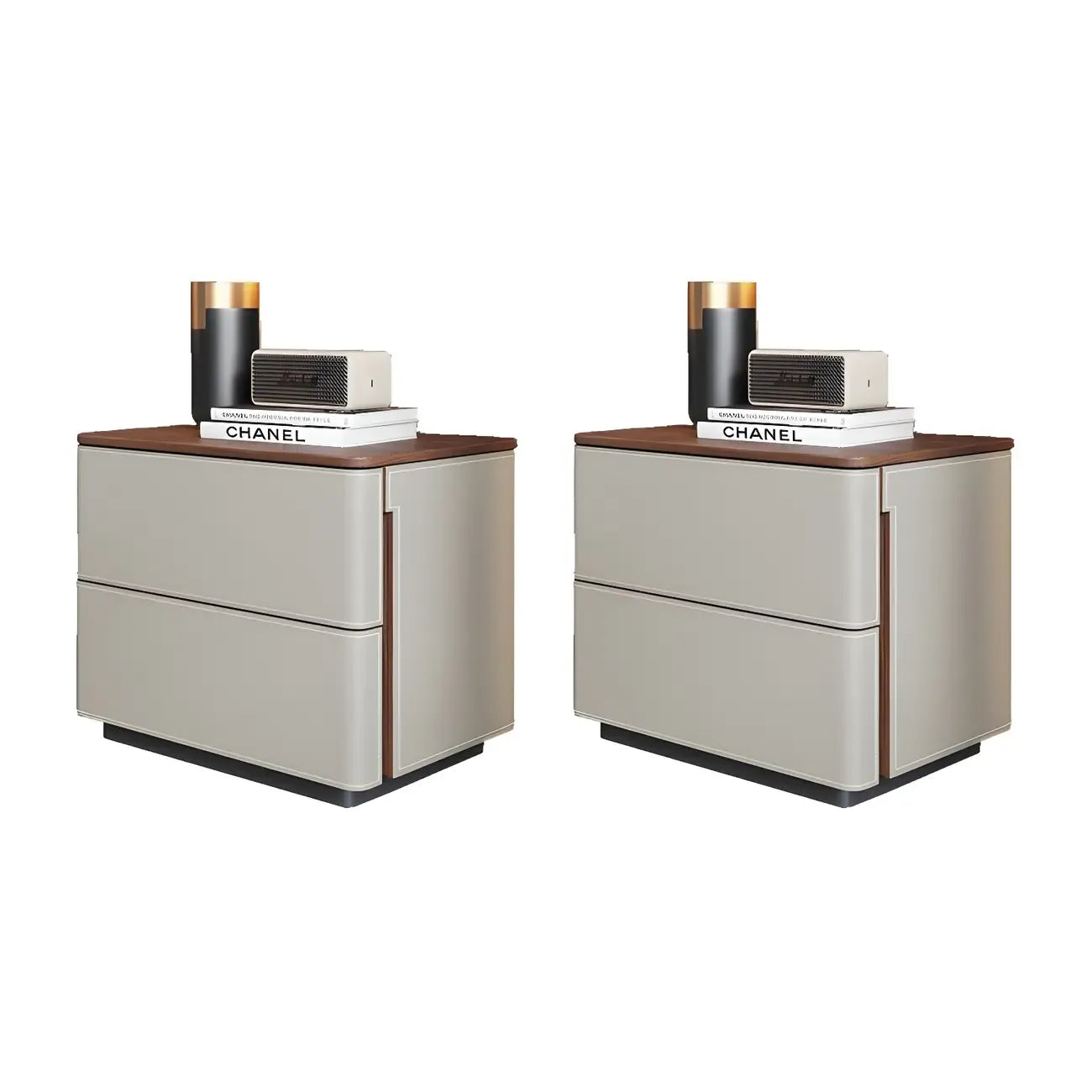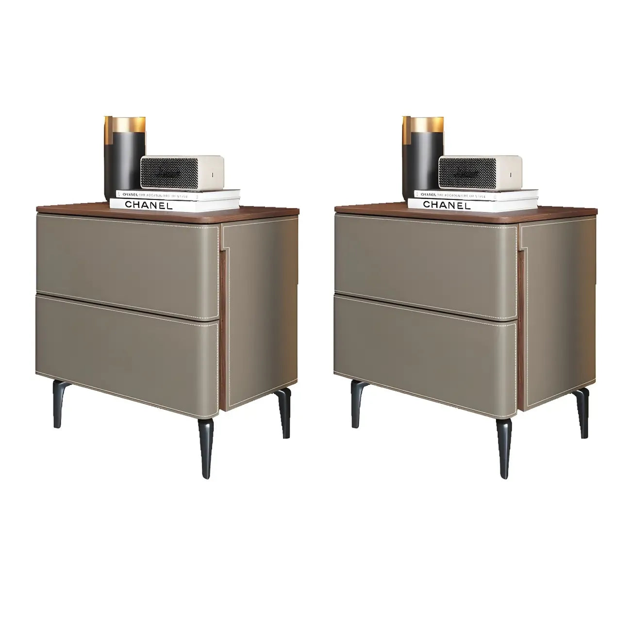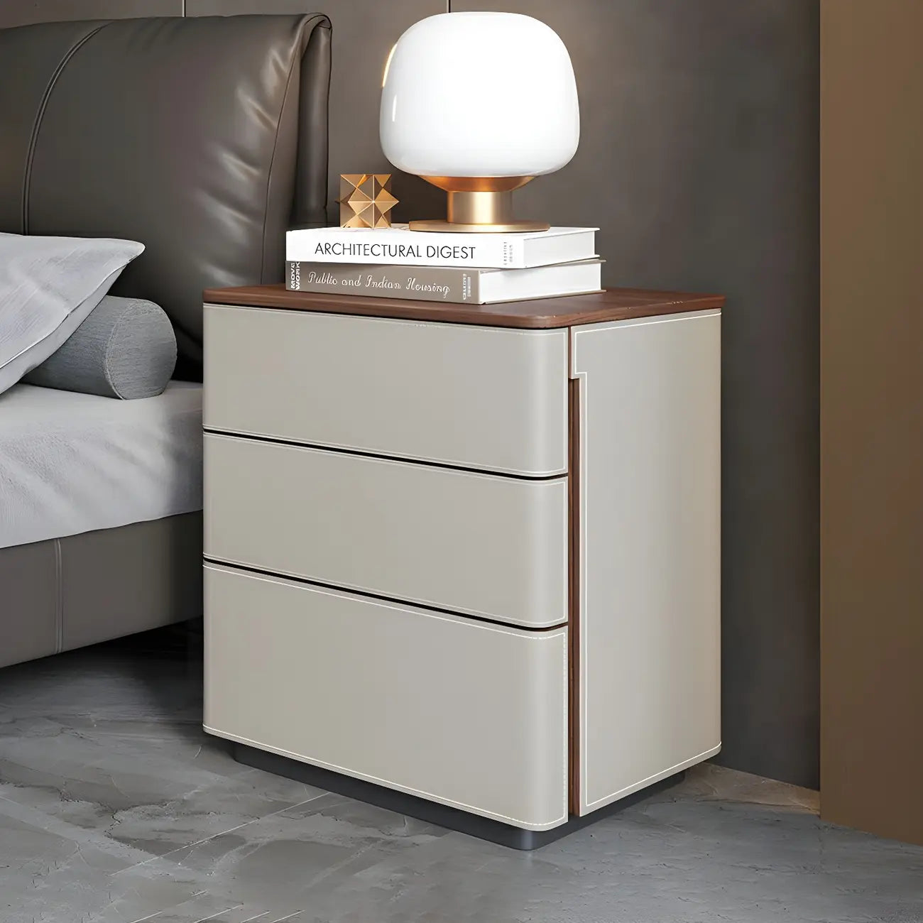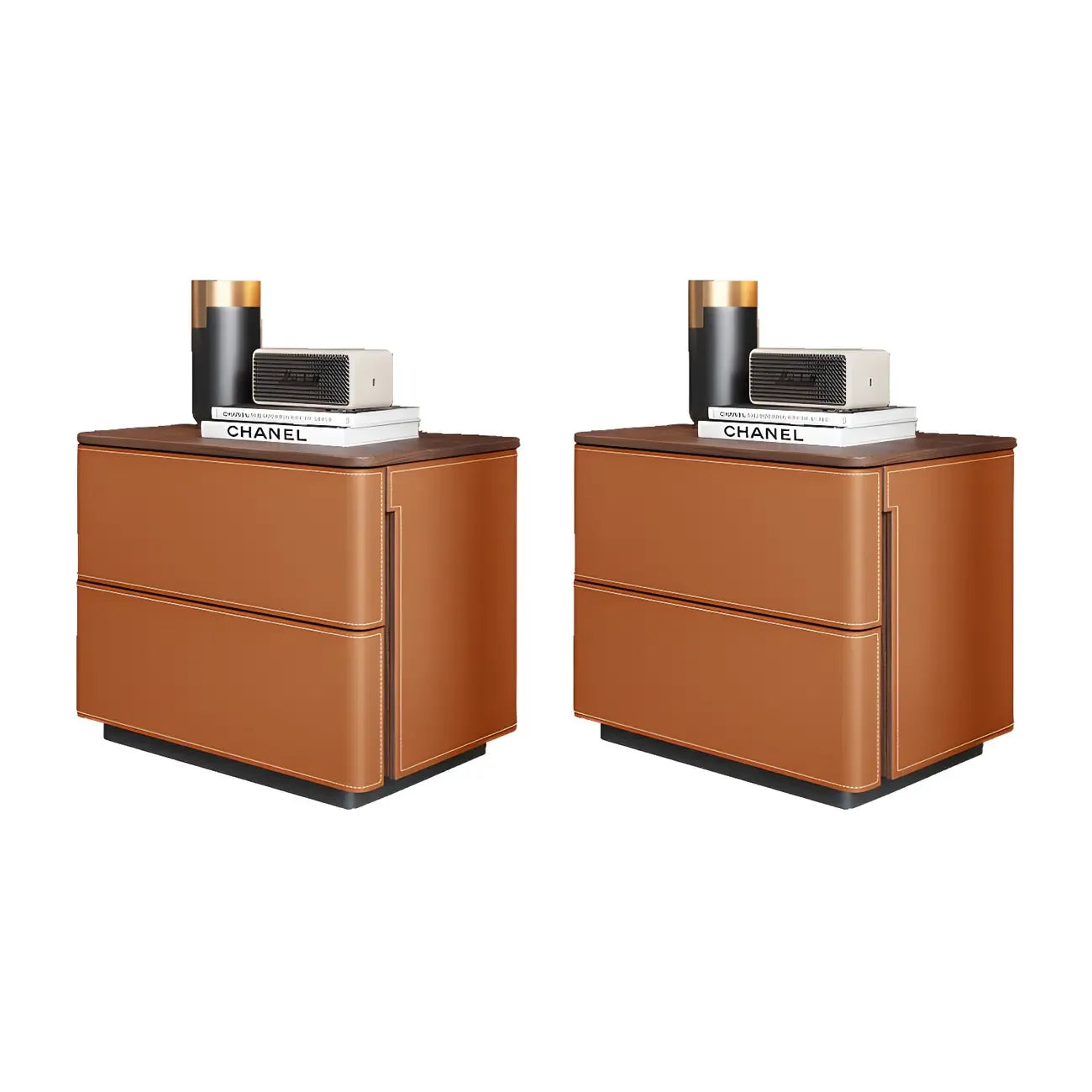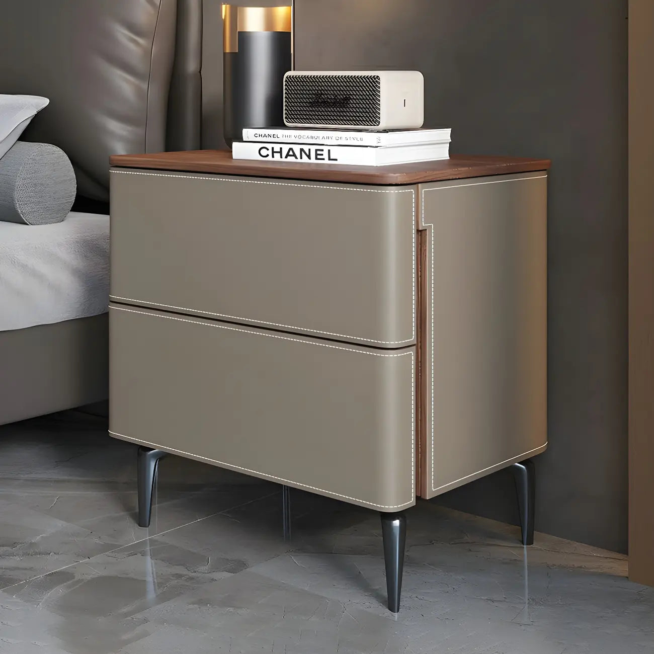 Table de chevet moderne avec tiroirs et plateau en bois et similicuir