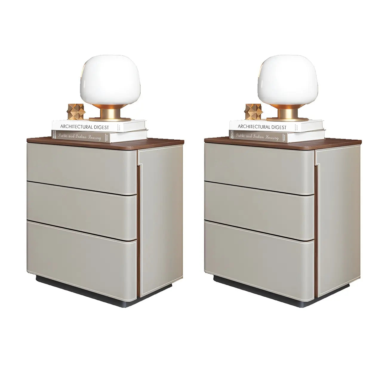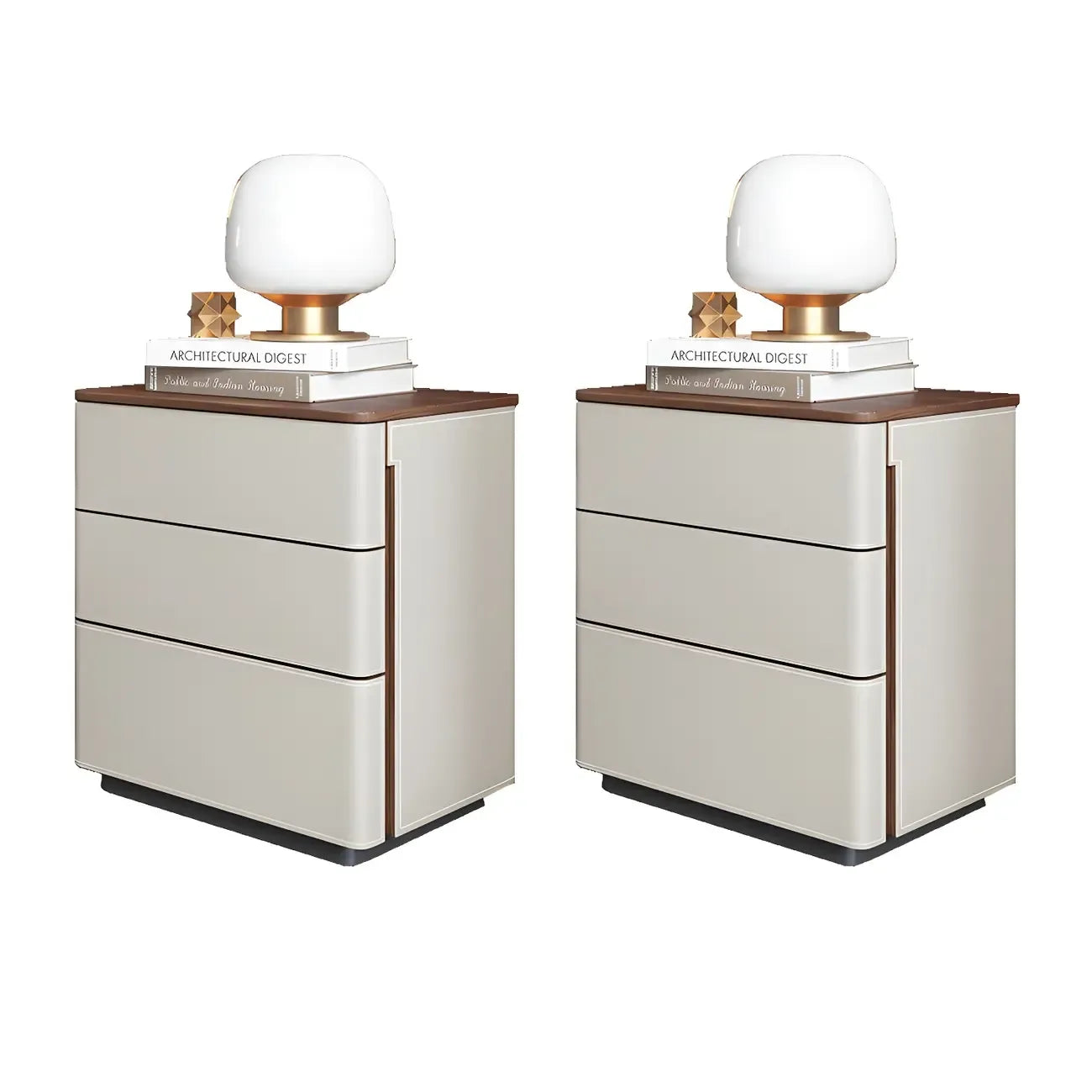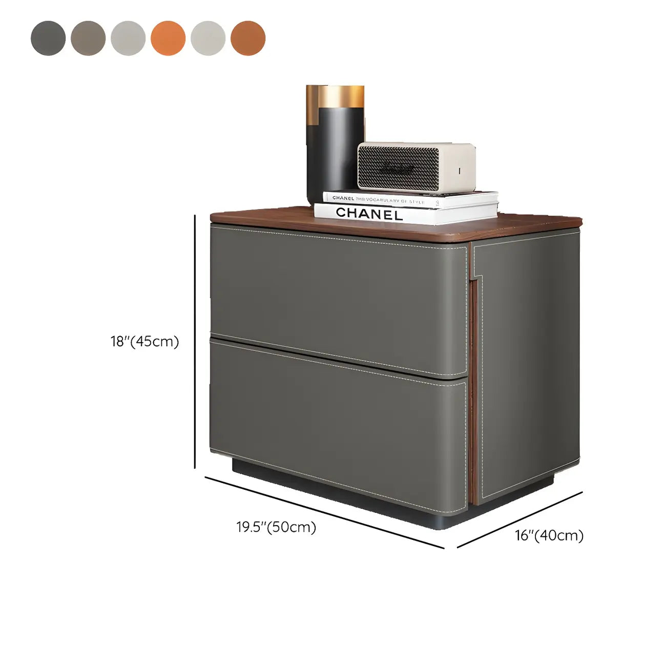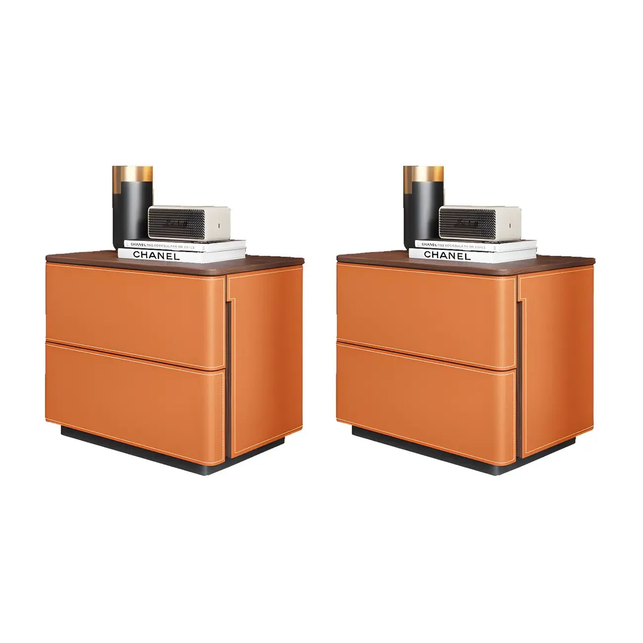 Table de chevet moderne avec tiroirs et plateau en bois et similicuir