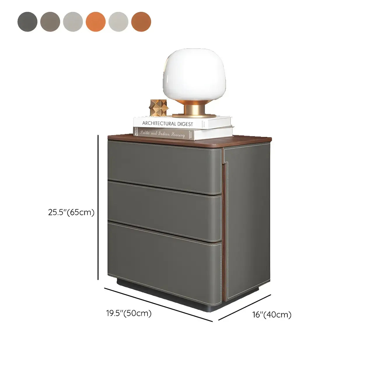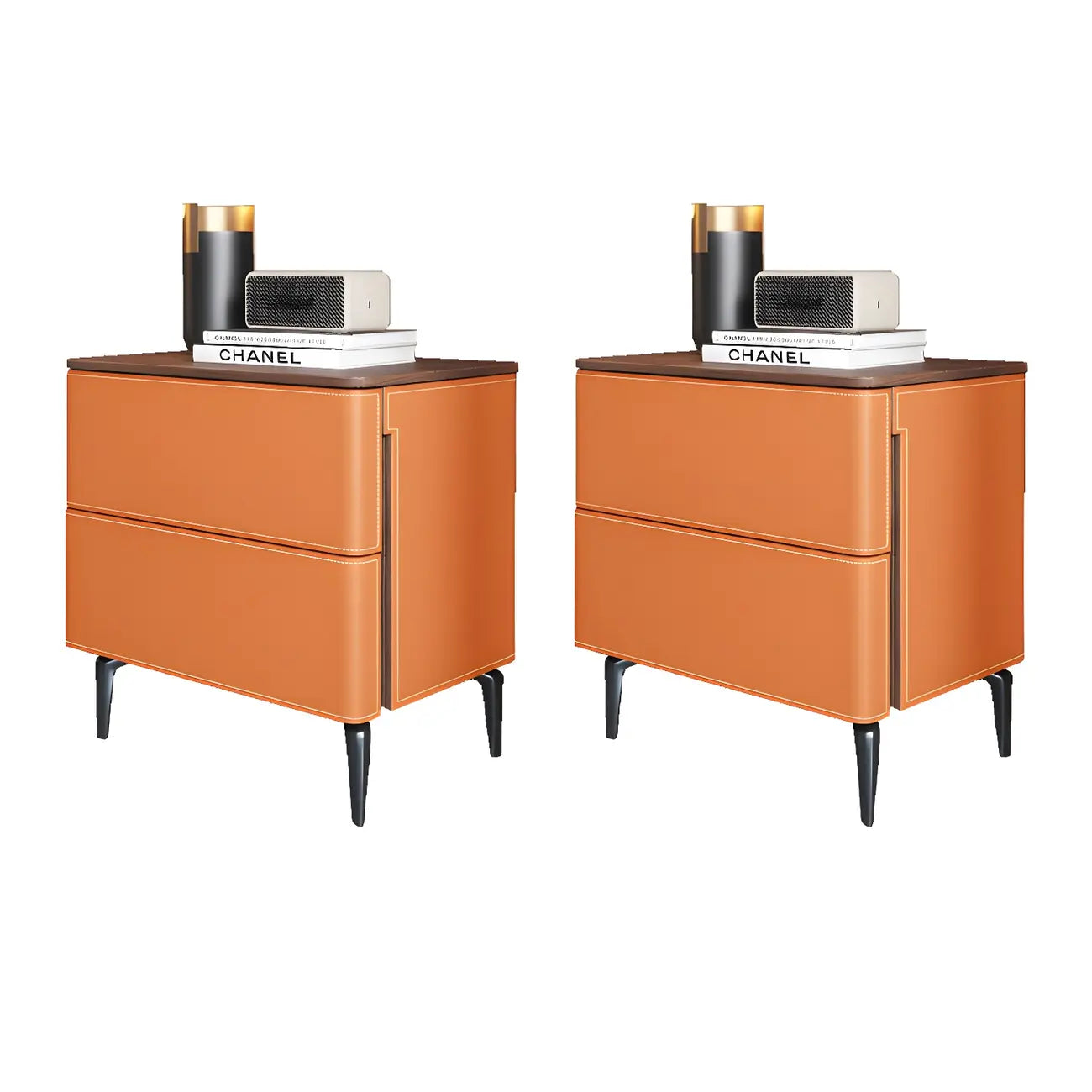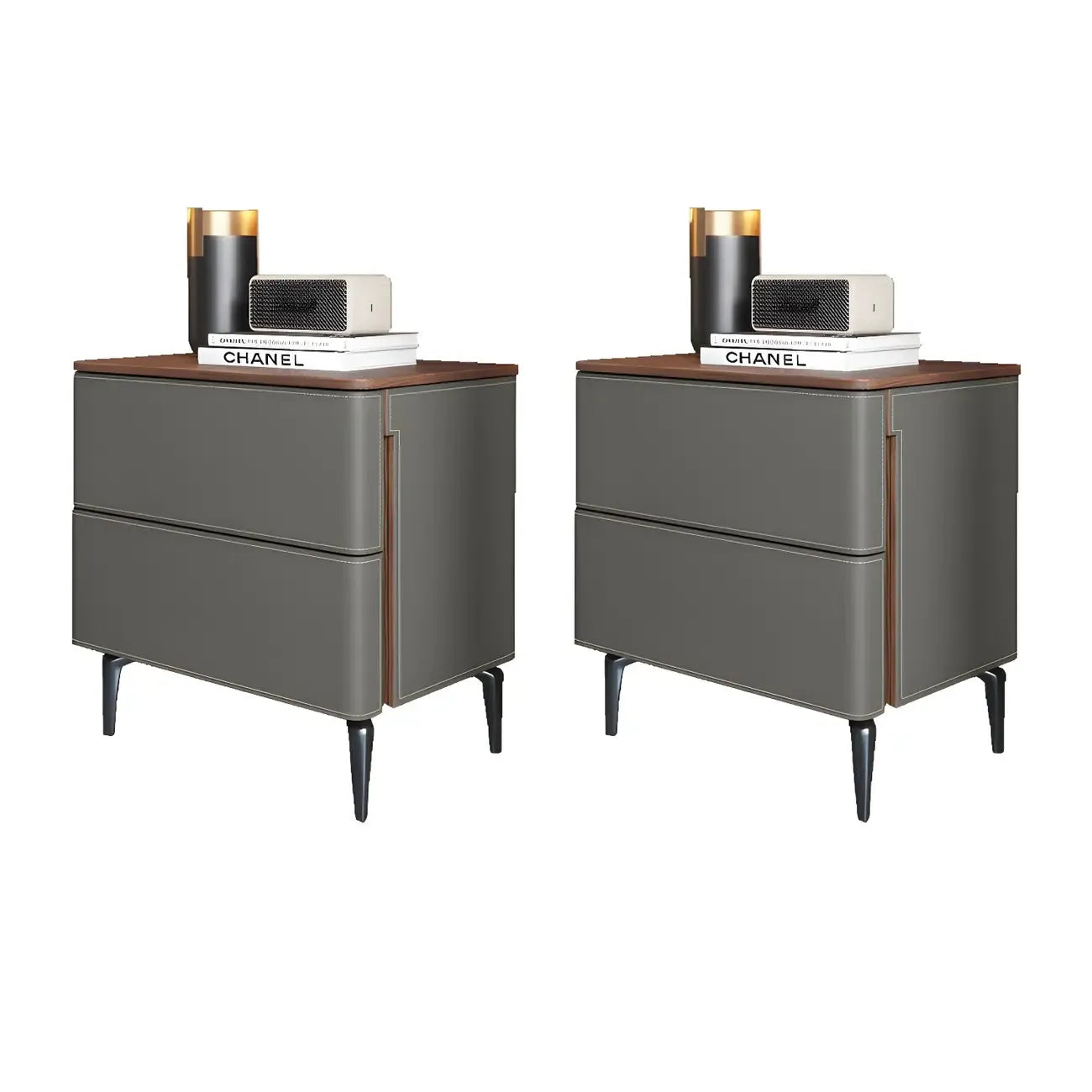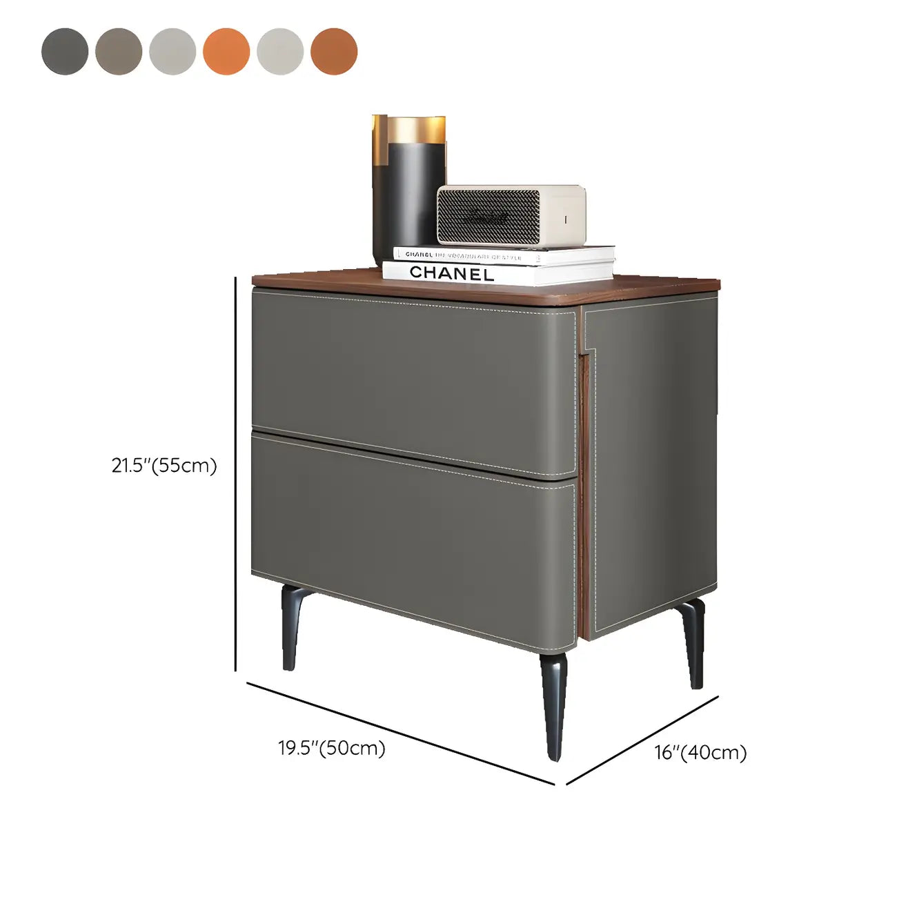 Table de chevet moderne avec tiroirs et plateau en bois et similicuir