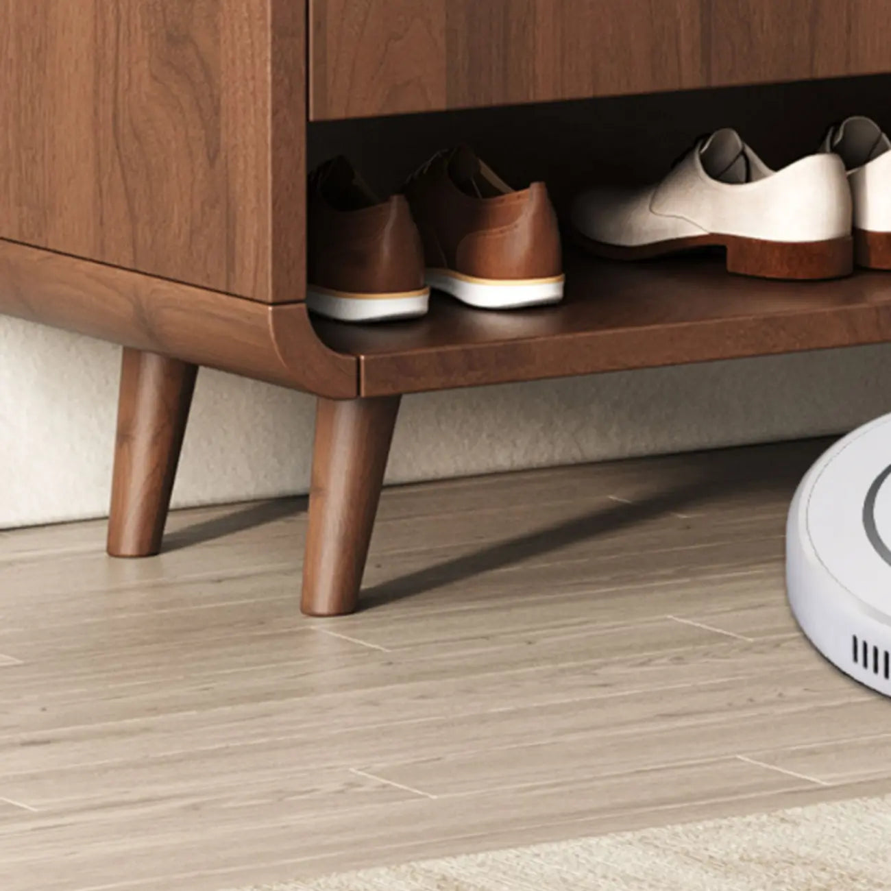 Meuble à chaussures moderne en bois blanc.