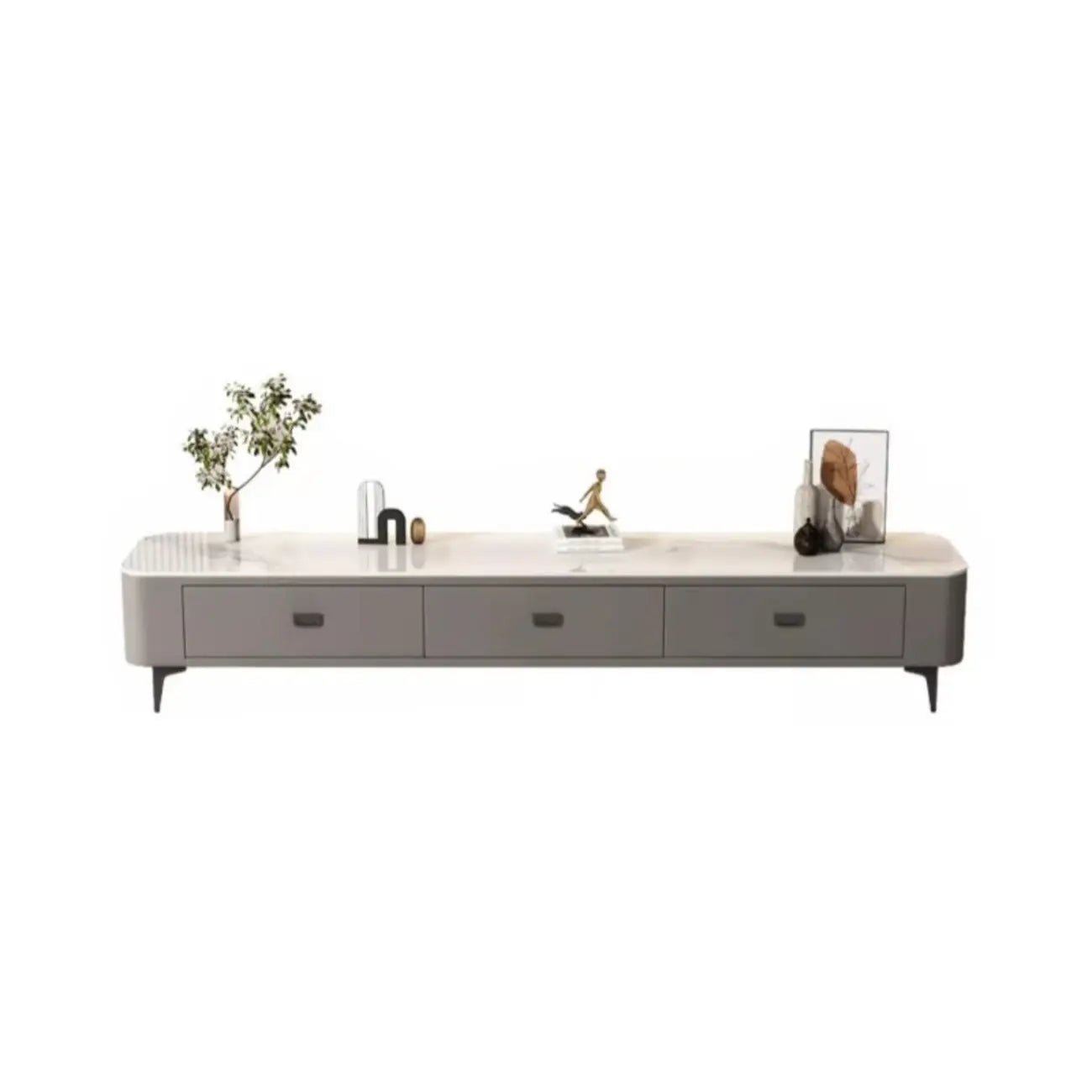 Meuble TV moderne avec plateau en marbre et rangement intégré pour salon