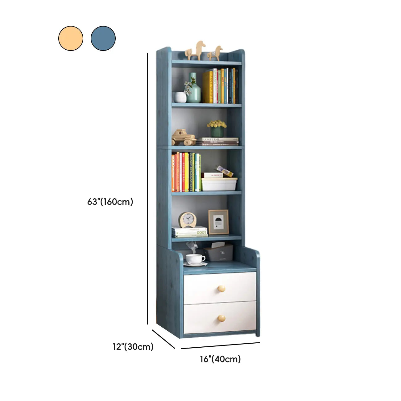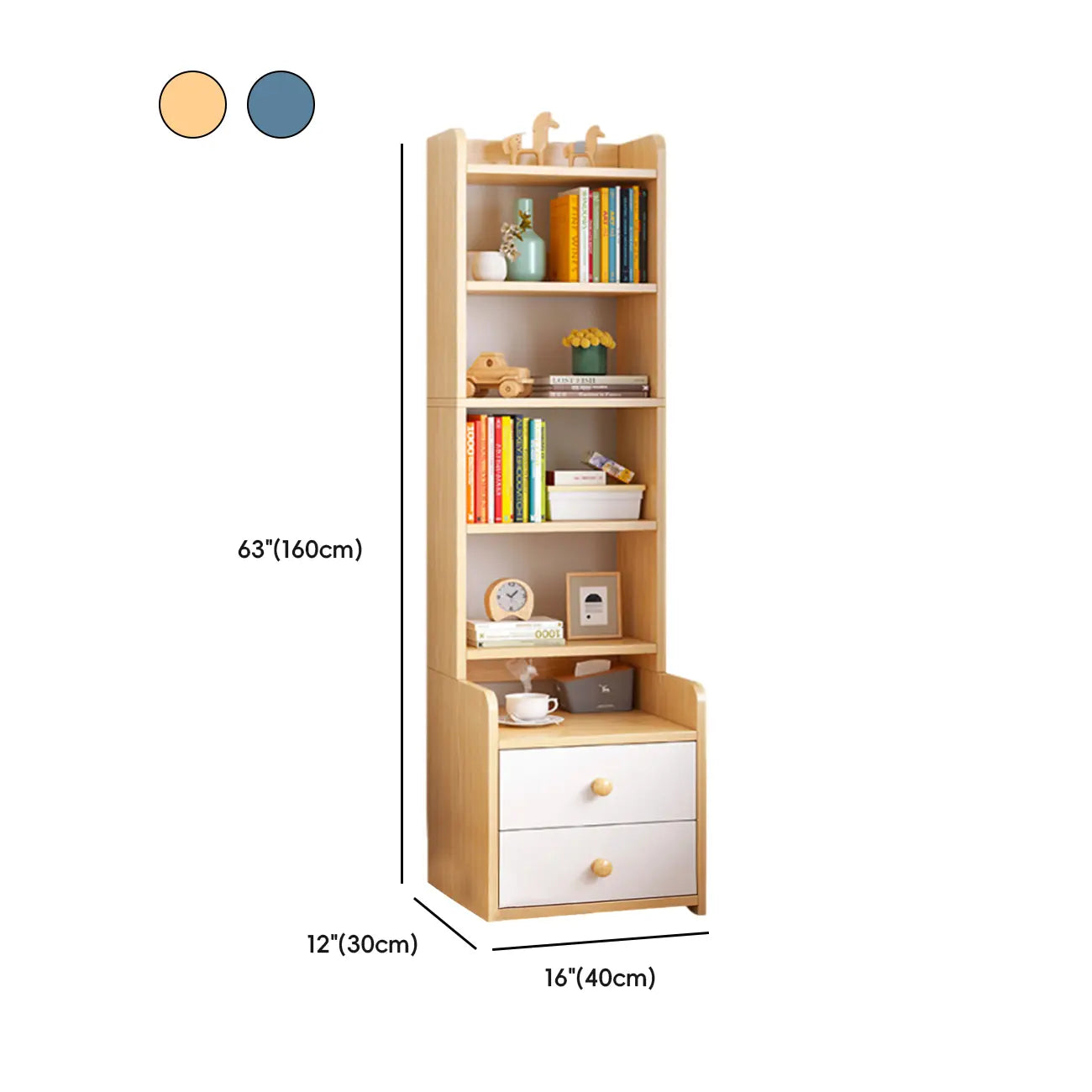 Table de chevet moderne en bois, haute et spacieuse, avec étagères et 2 tiroirs