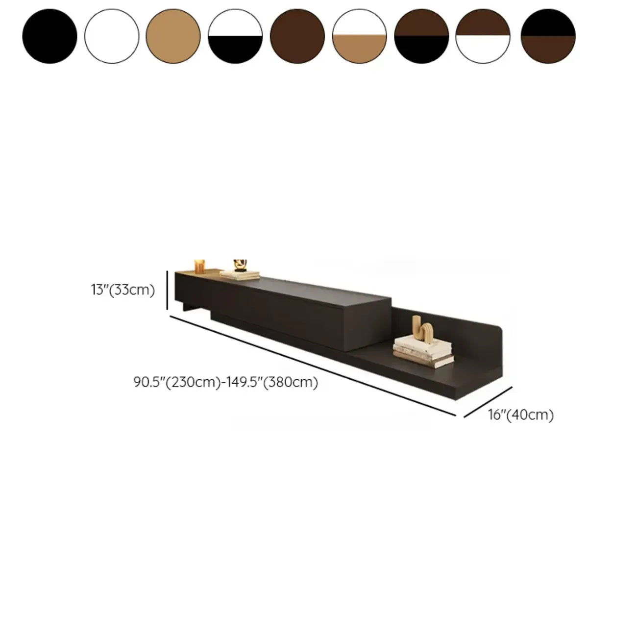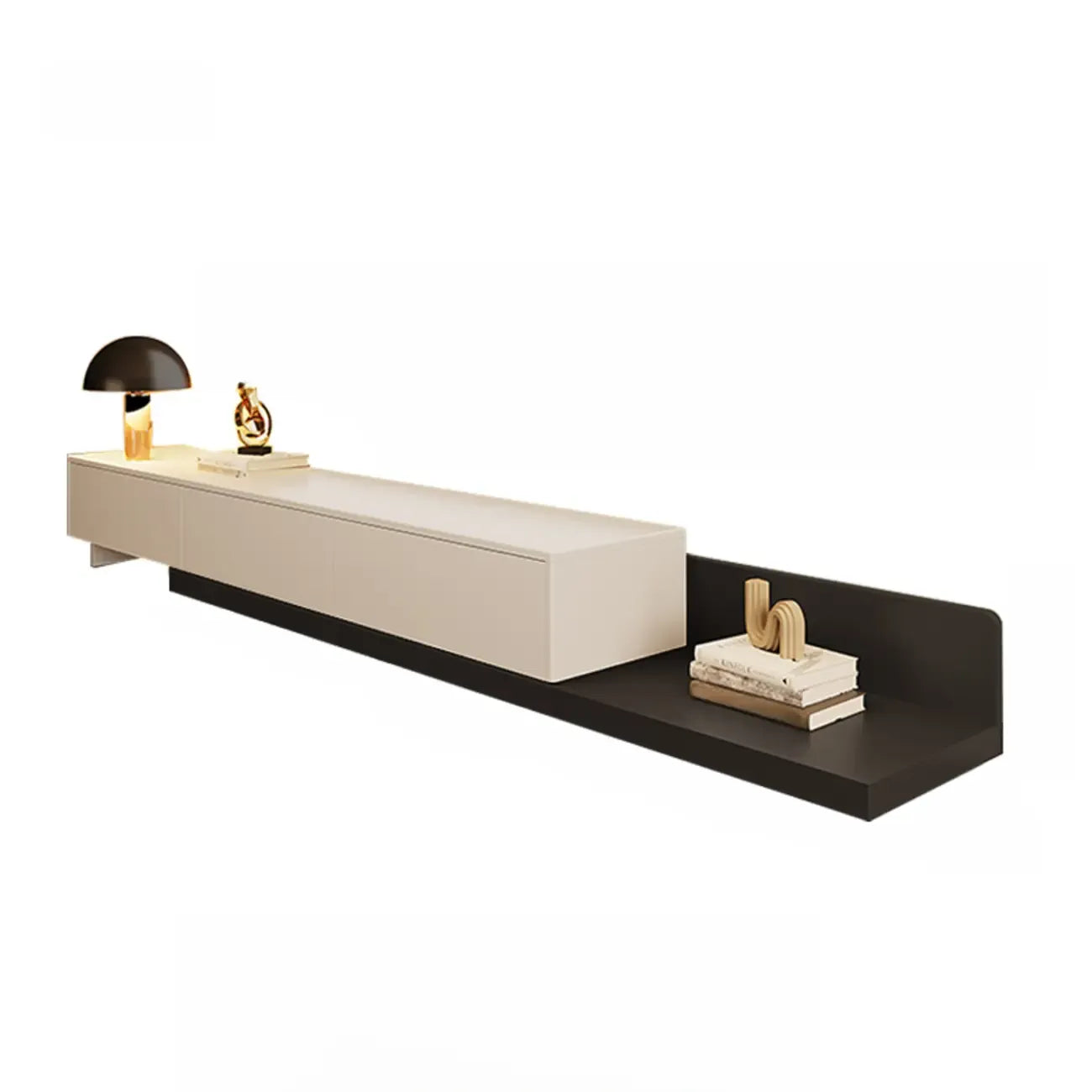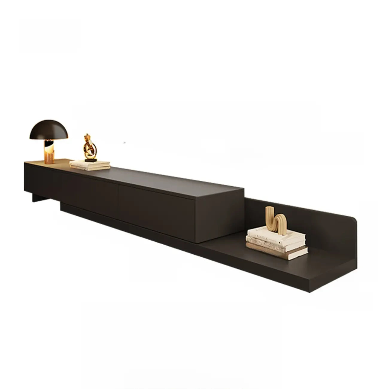 Meuble TV moderne en bois avec rangement ouvert et système de gestion des câbles