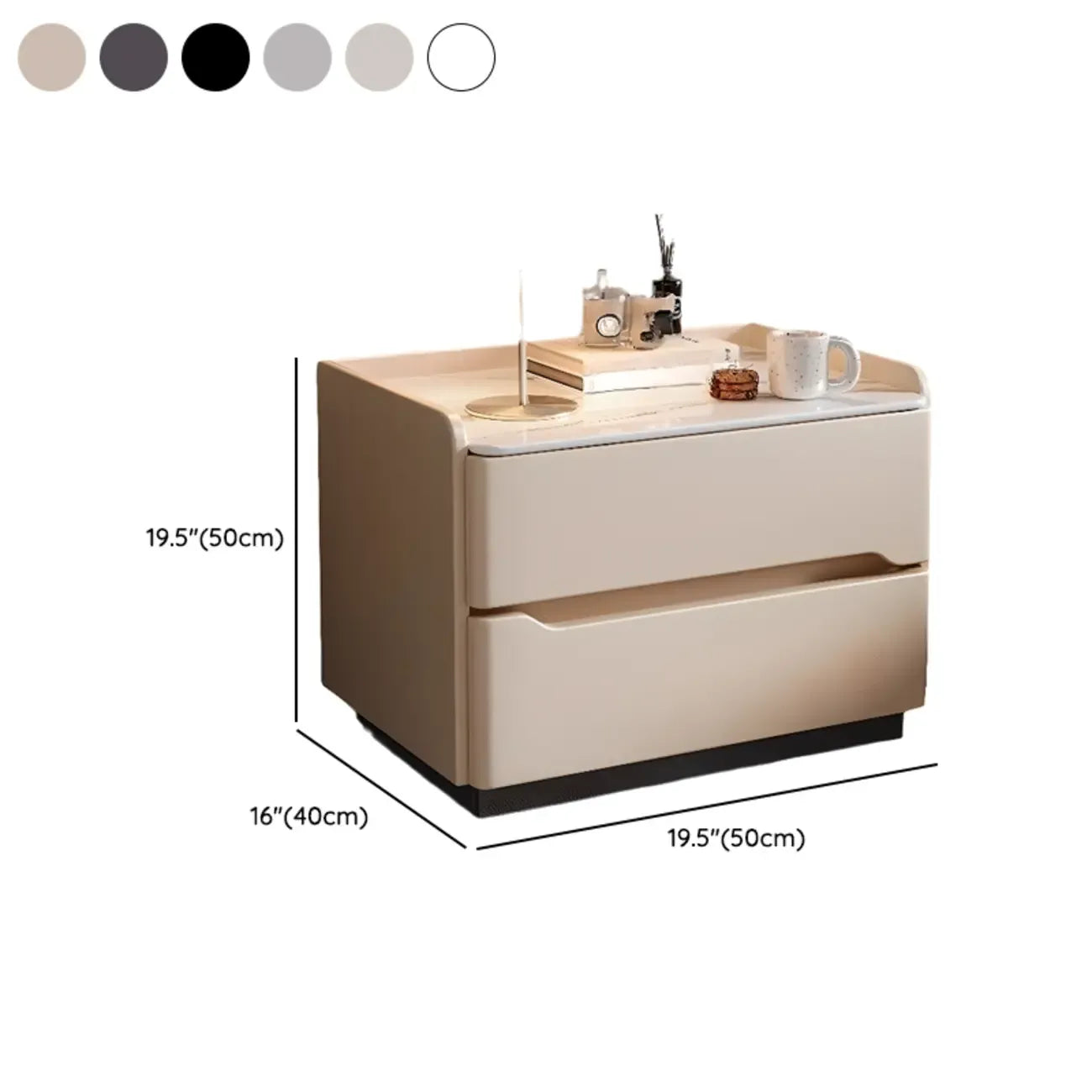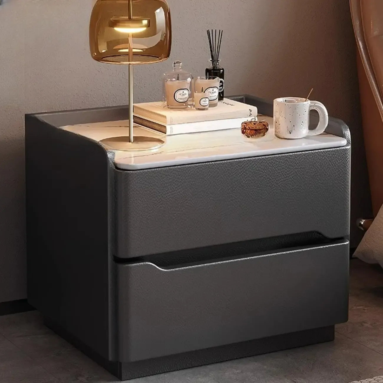 Table de chevet nordique en bois avec plateau en pierre frittée et 2 tiroirs
