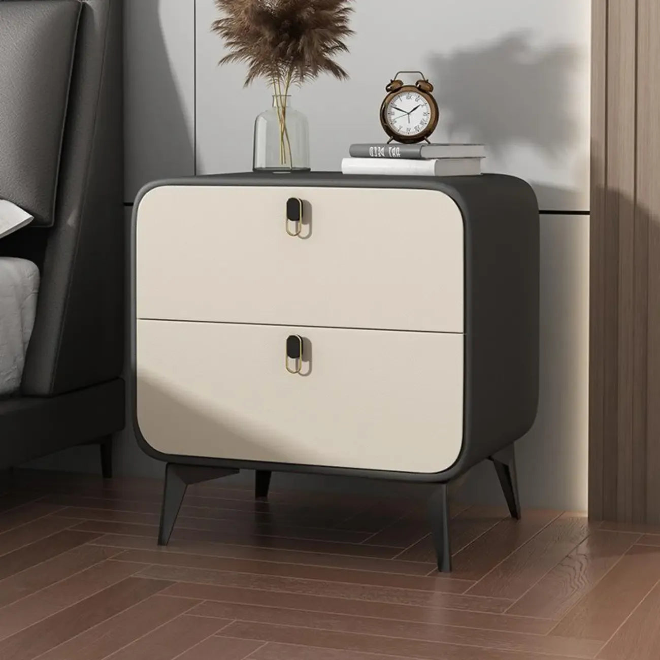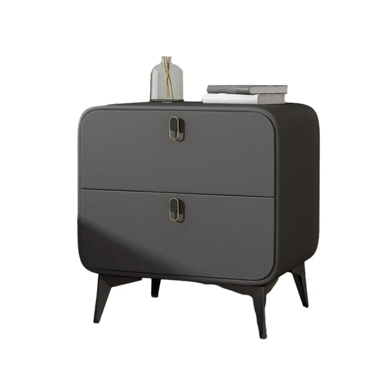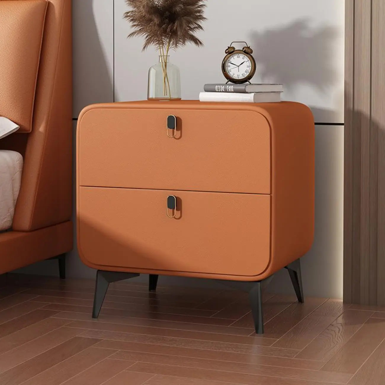 Table de chevet scandinave en cuir et bois avec 2 tiroirs