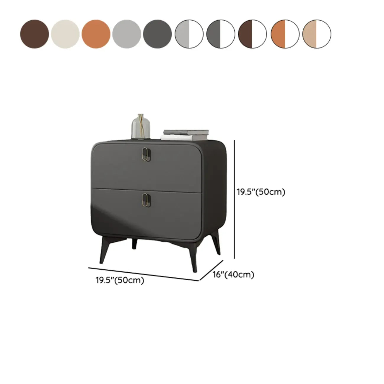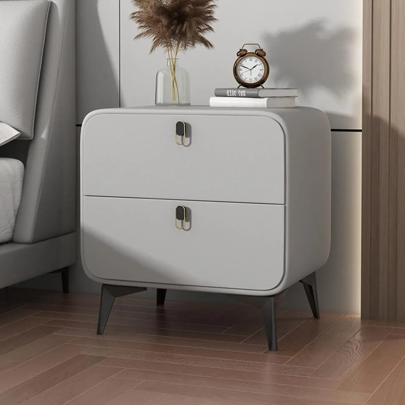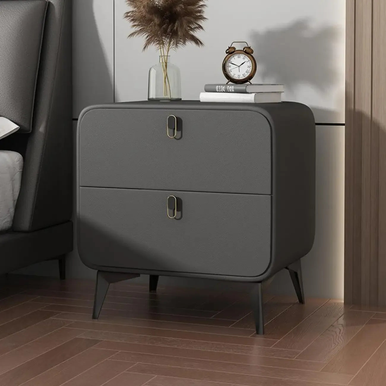 Table de chevet scandinave en cuir et bois avec 2 tiroirs