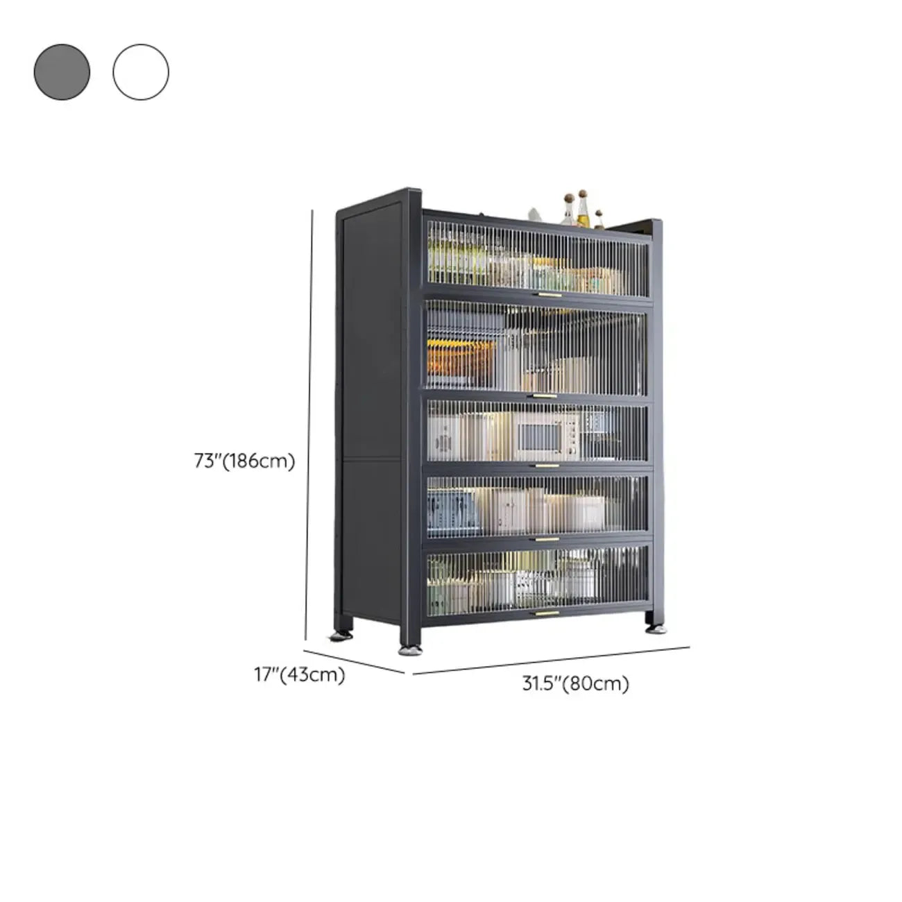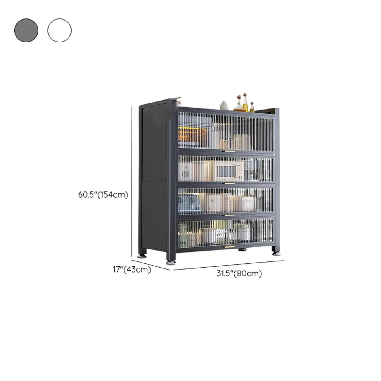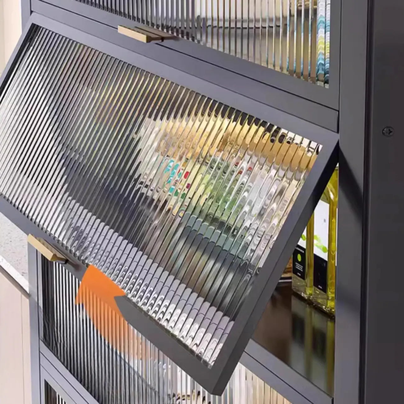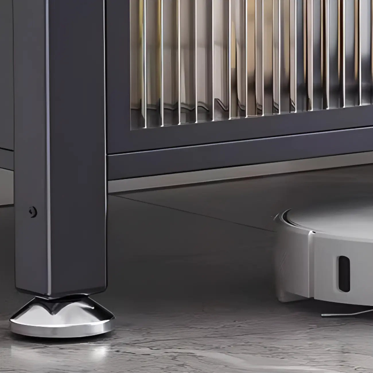 Buffet moderne et simple en métal avec portes relevables et plusieurs placards