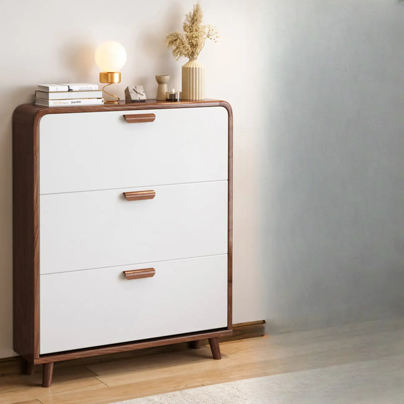 Meuble à chaussures traditionnel en bois massif à 3 niveaux, dissimulé et réglable