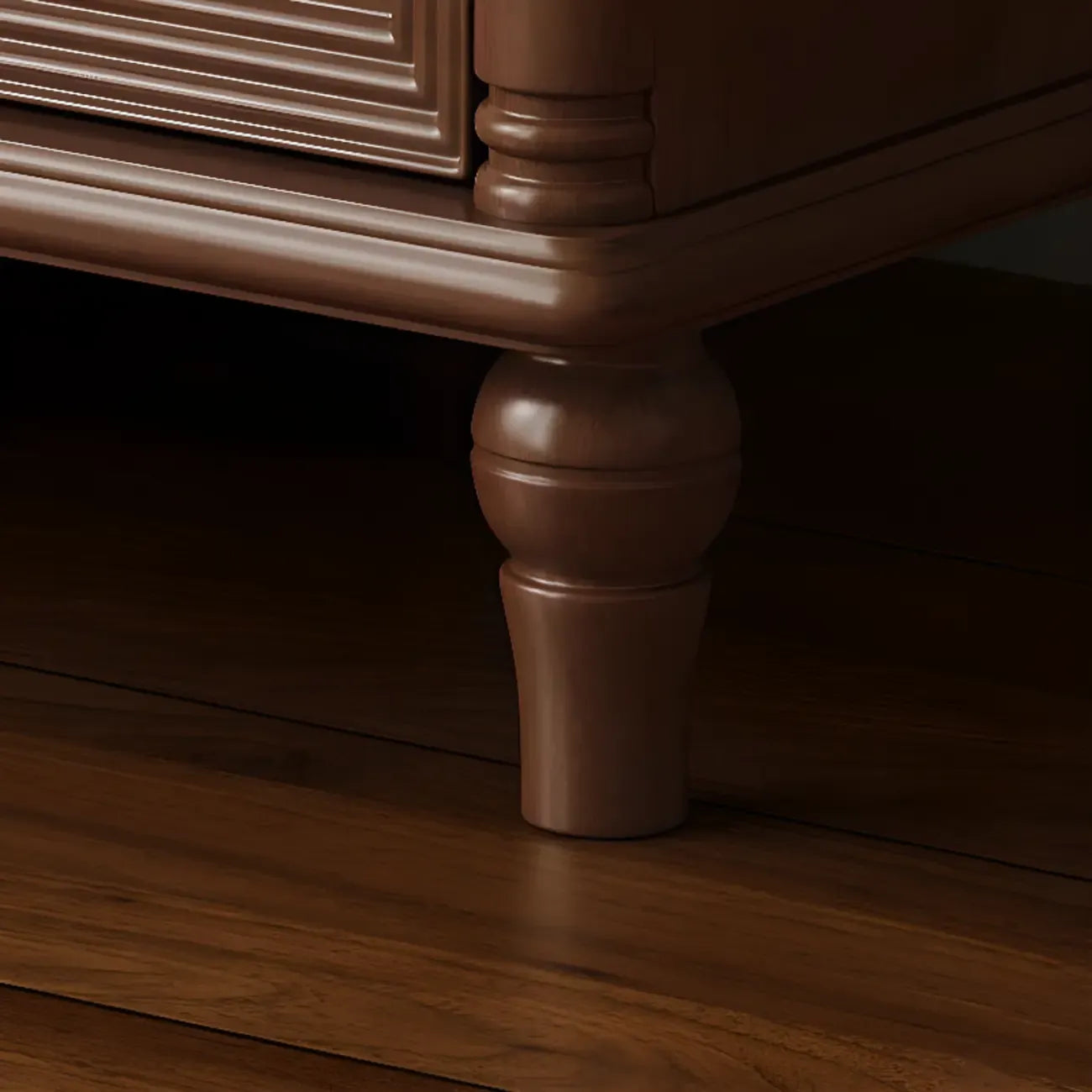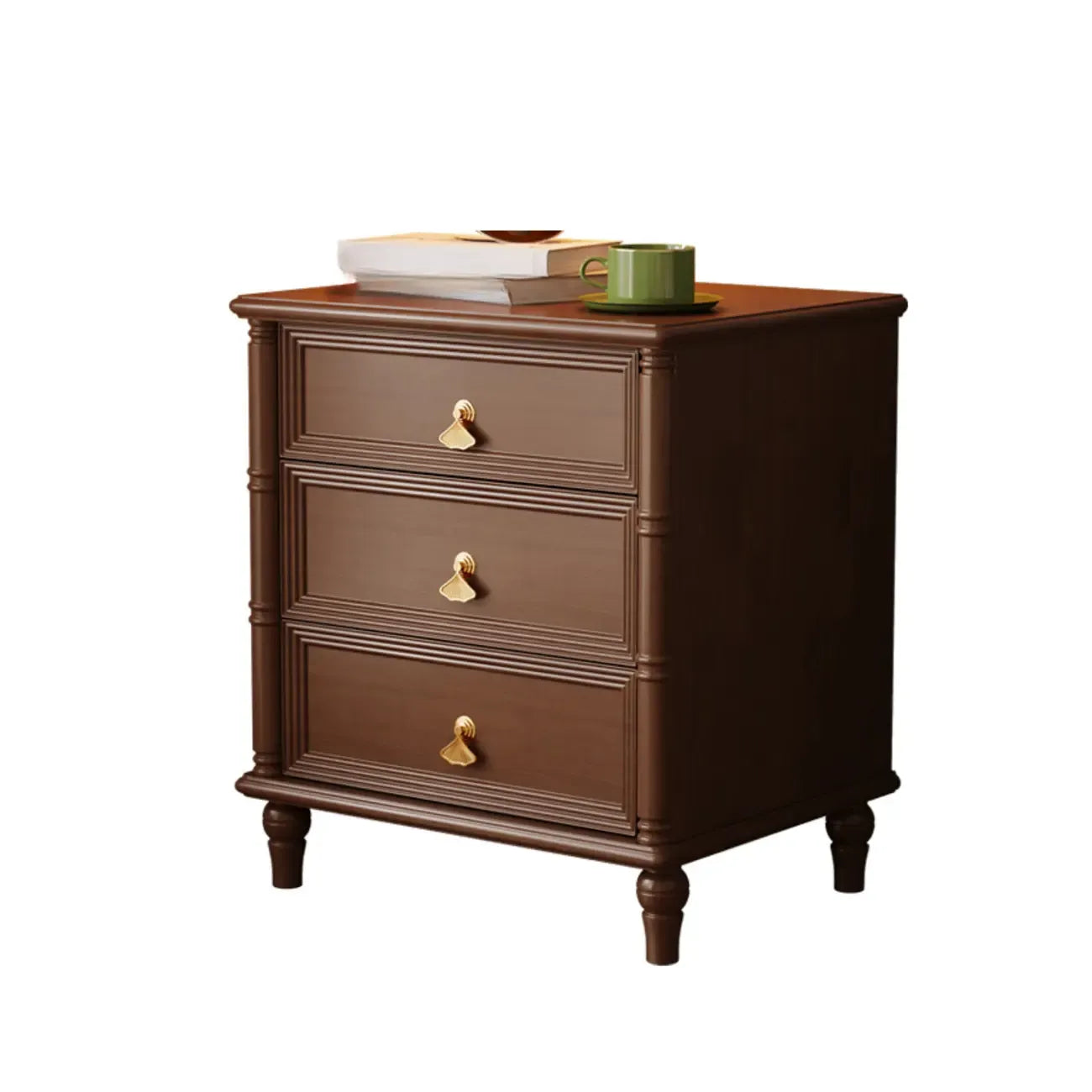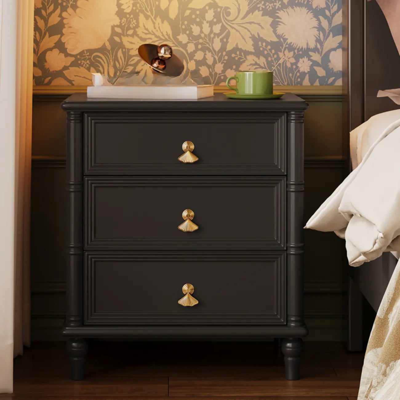 Table de chevet traditionnelle rectangulaire en bois massif noir à 3 tiroirs