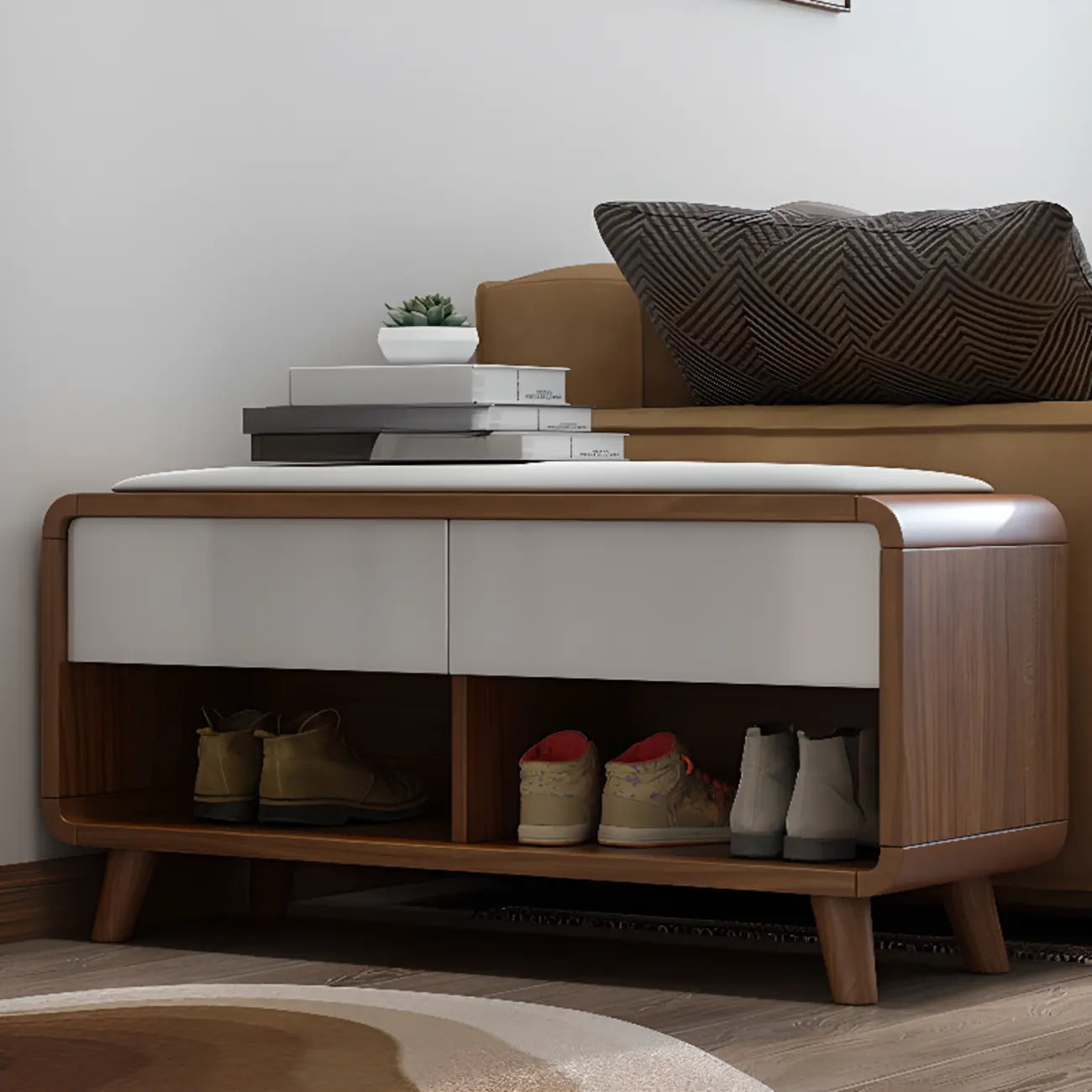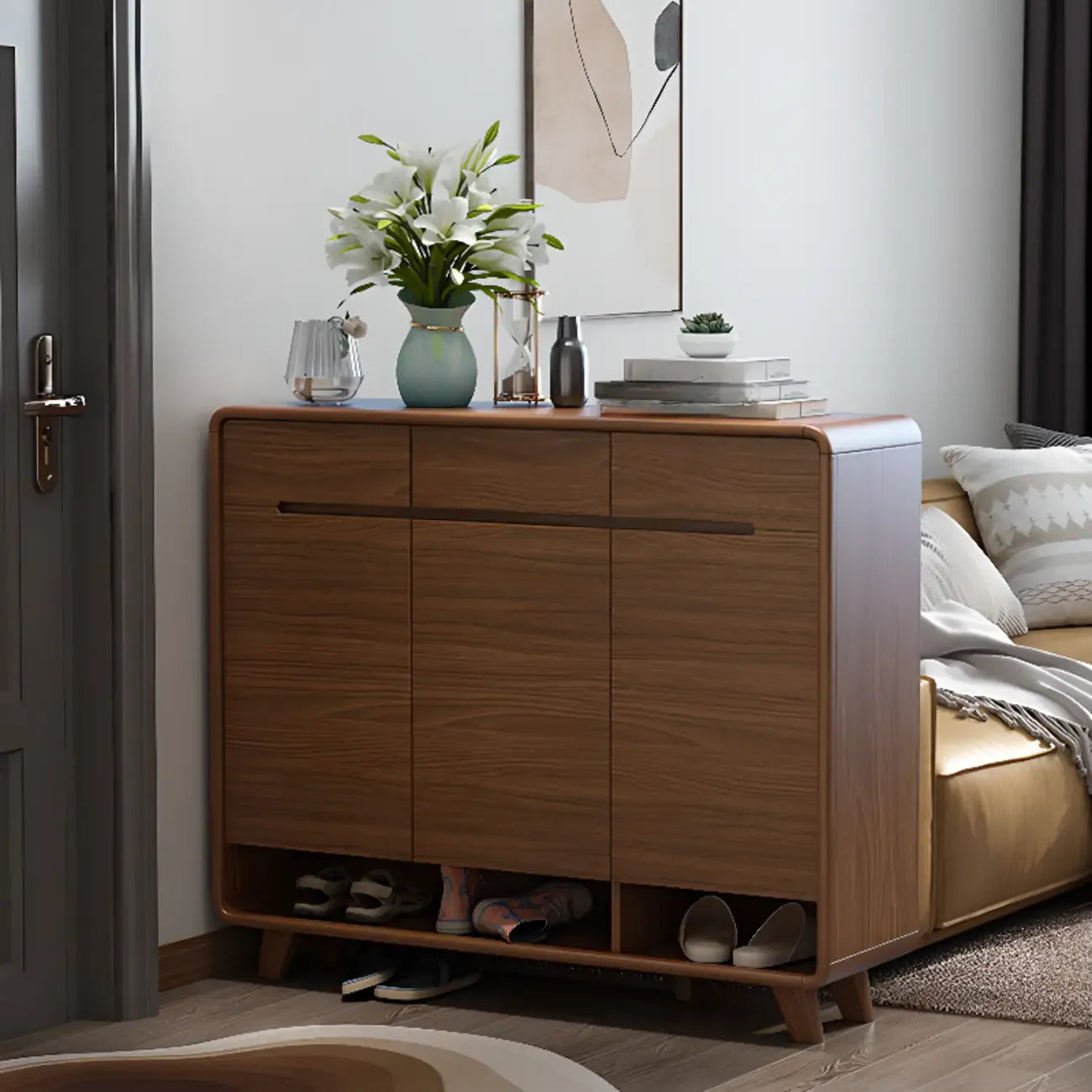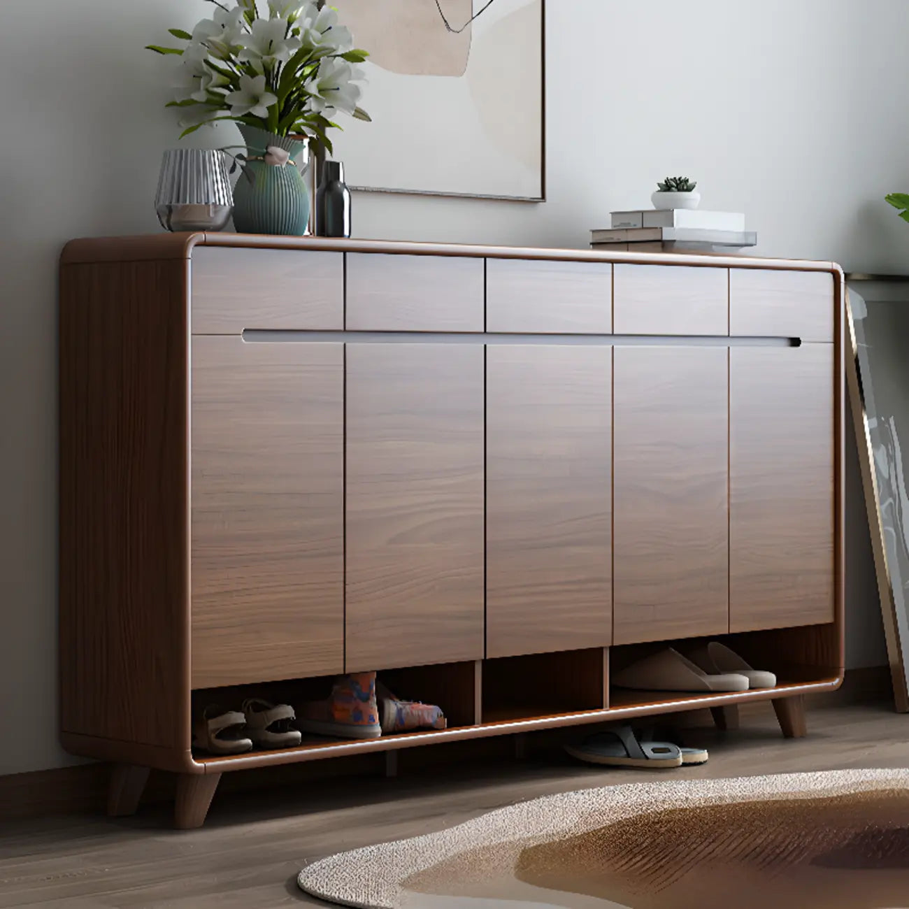Armoire à chaussures d'entrée traditionnelle en noyer