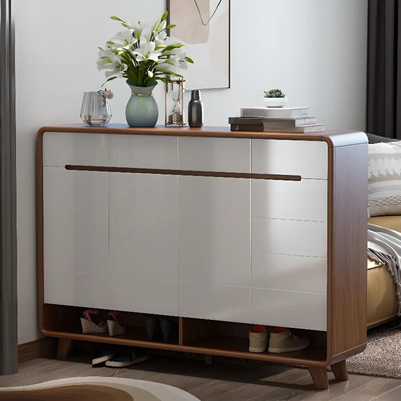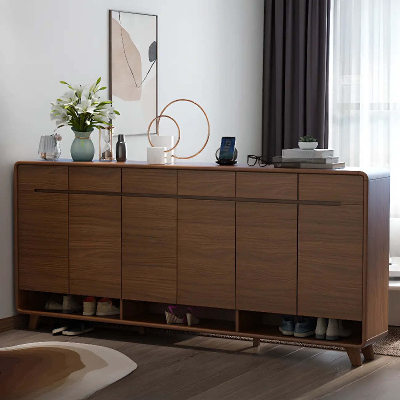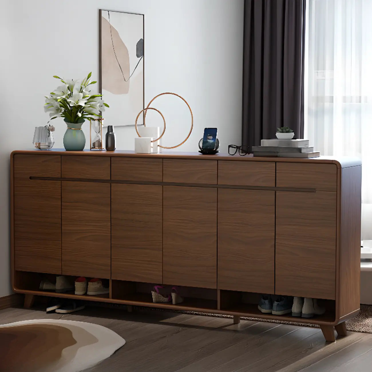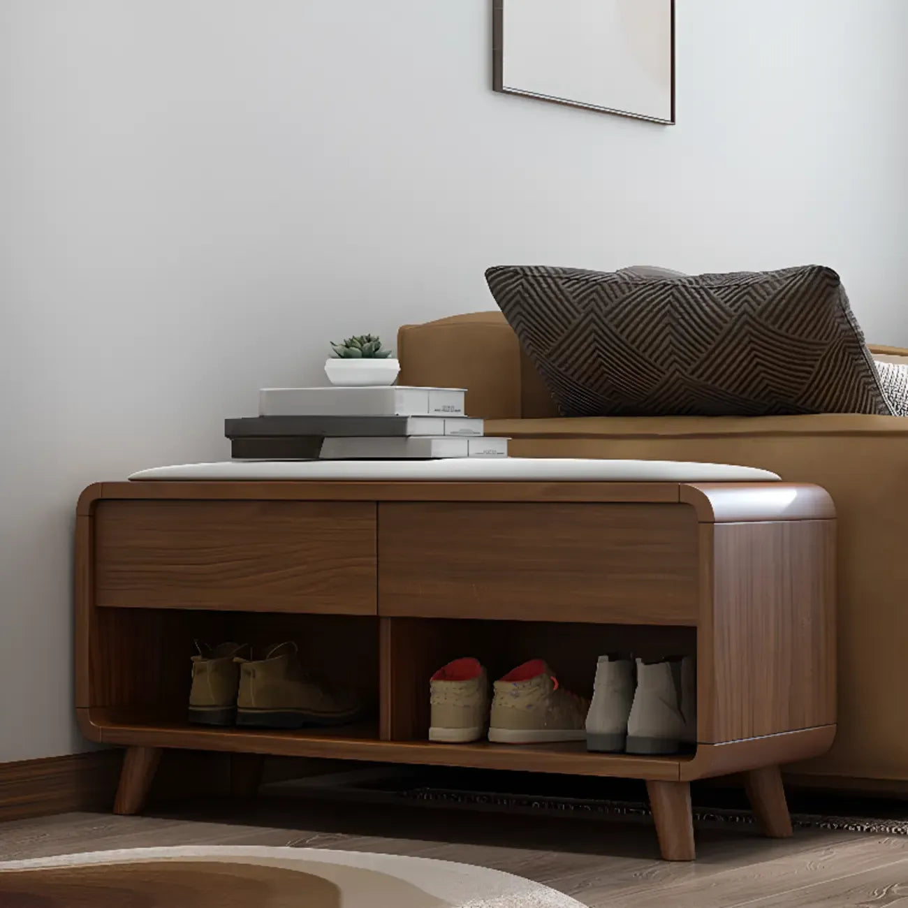 Armoire à chaussures d'entrée traditionnelle en noyer