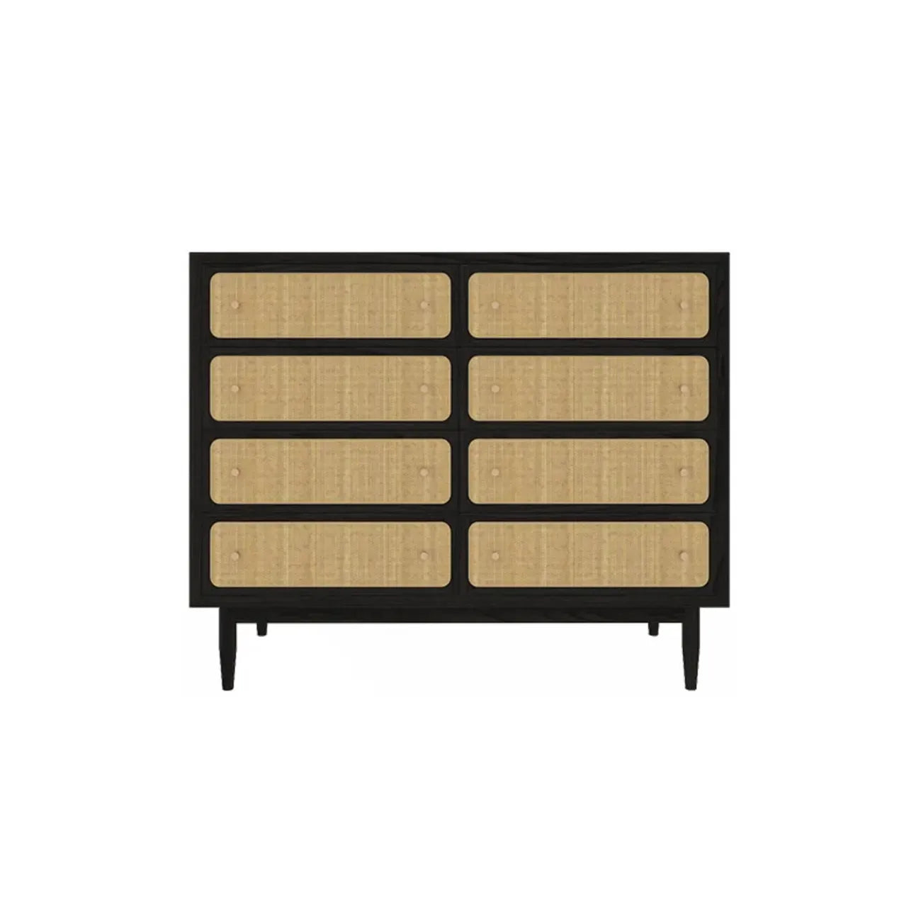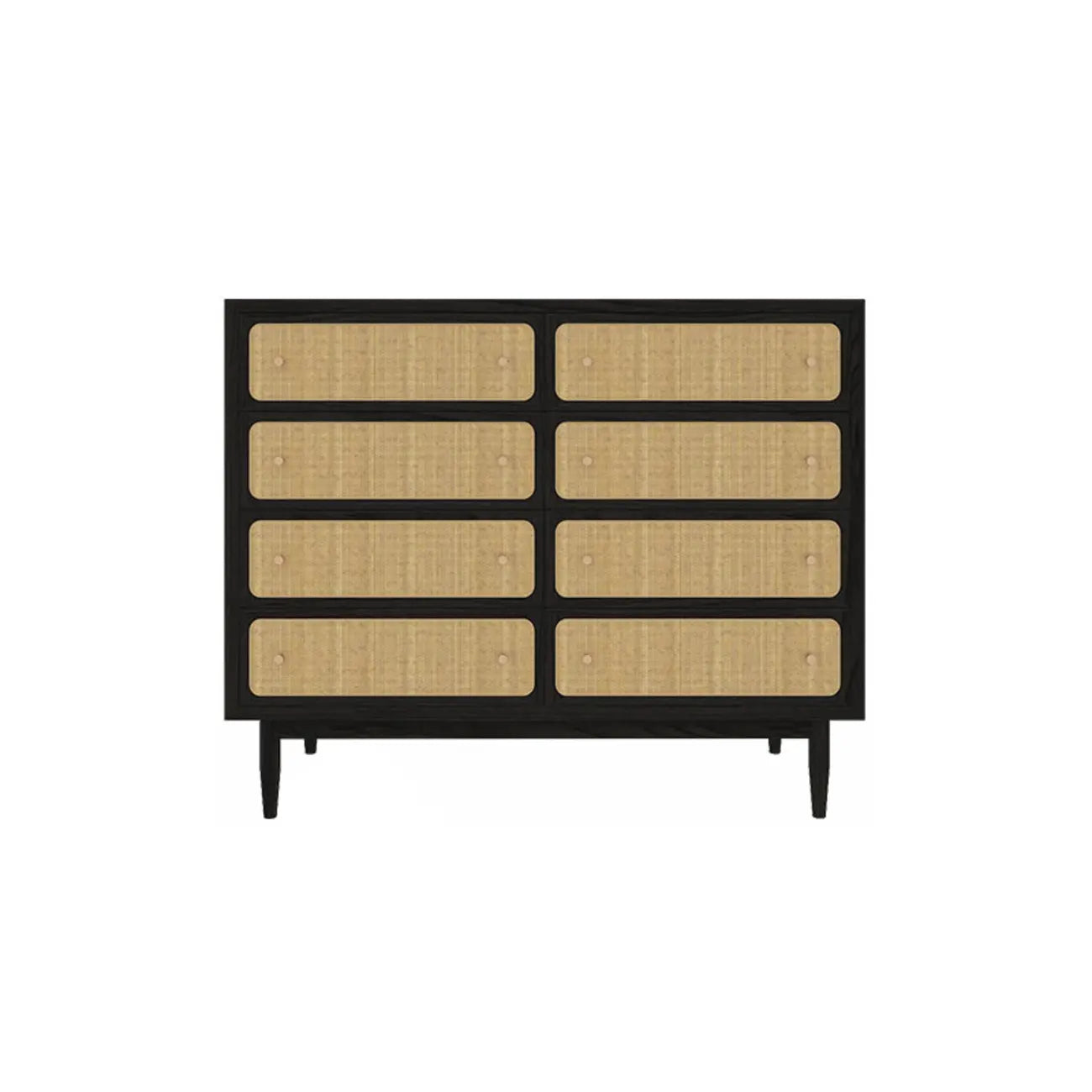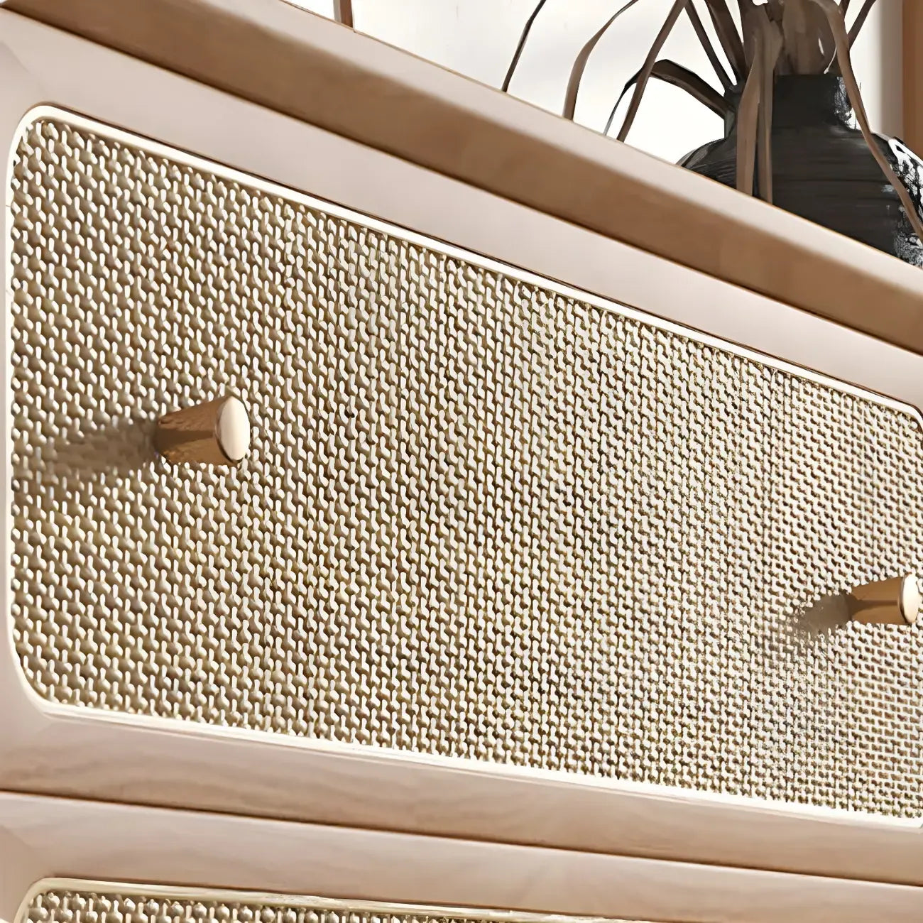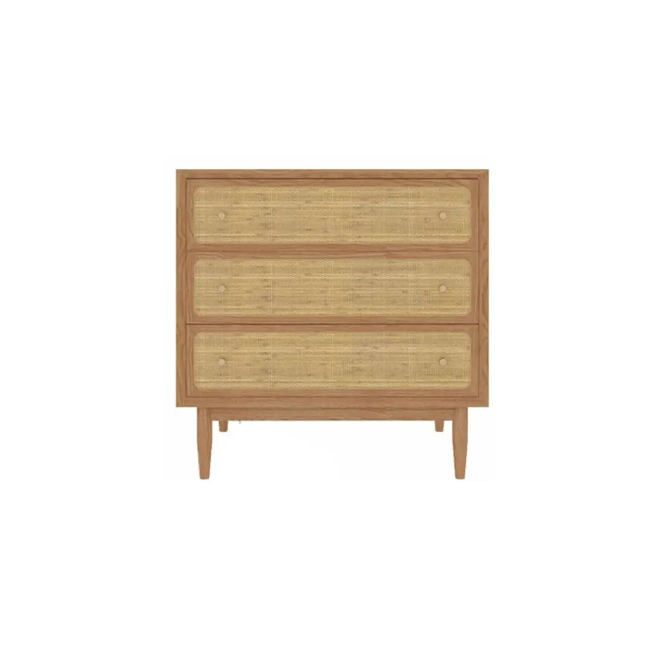 Commode tropicale en bois avec tiroirs et poignées dorées