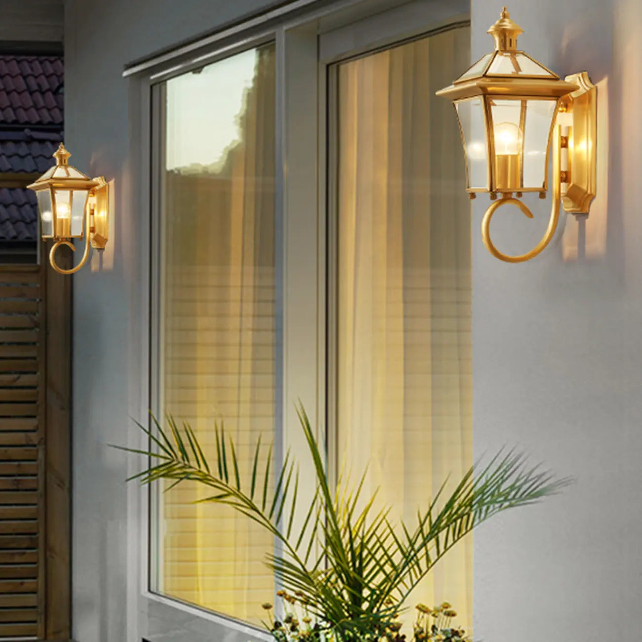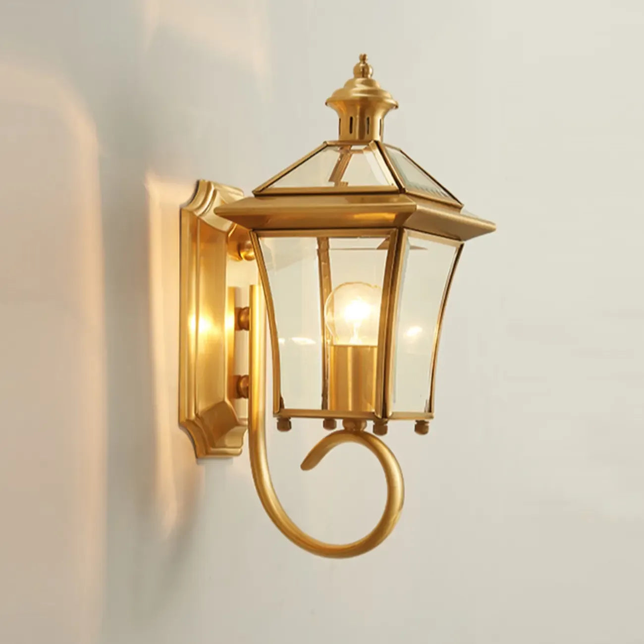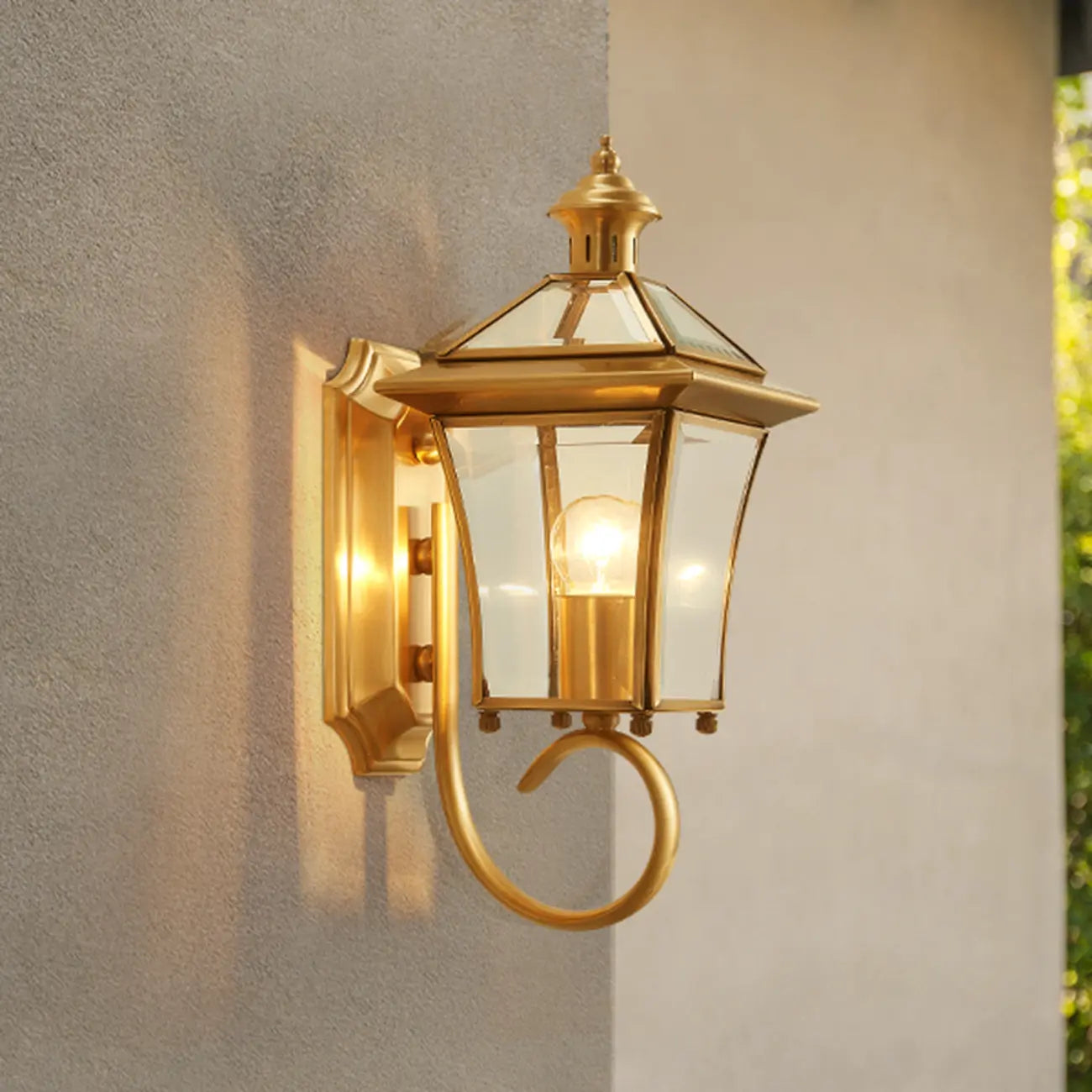 Applique murale vintage en laiton avec verre transparent pour extérieur