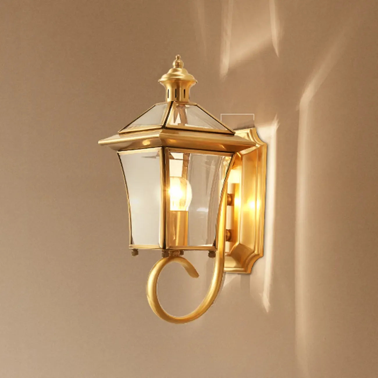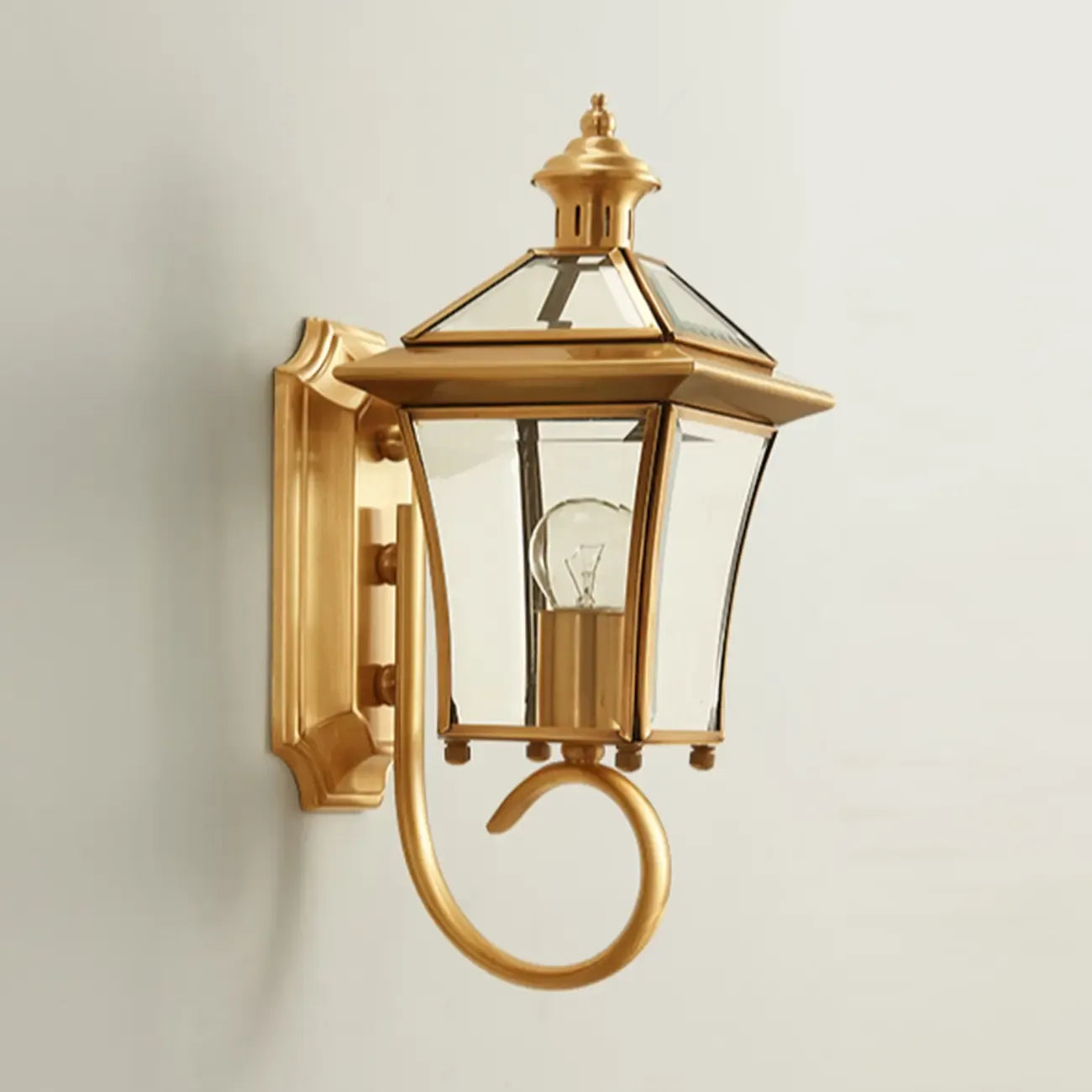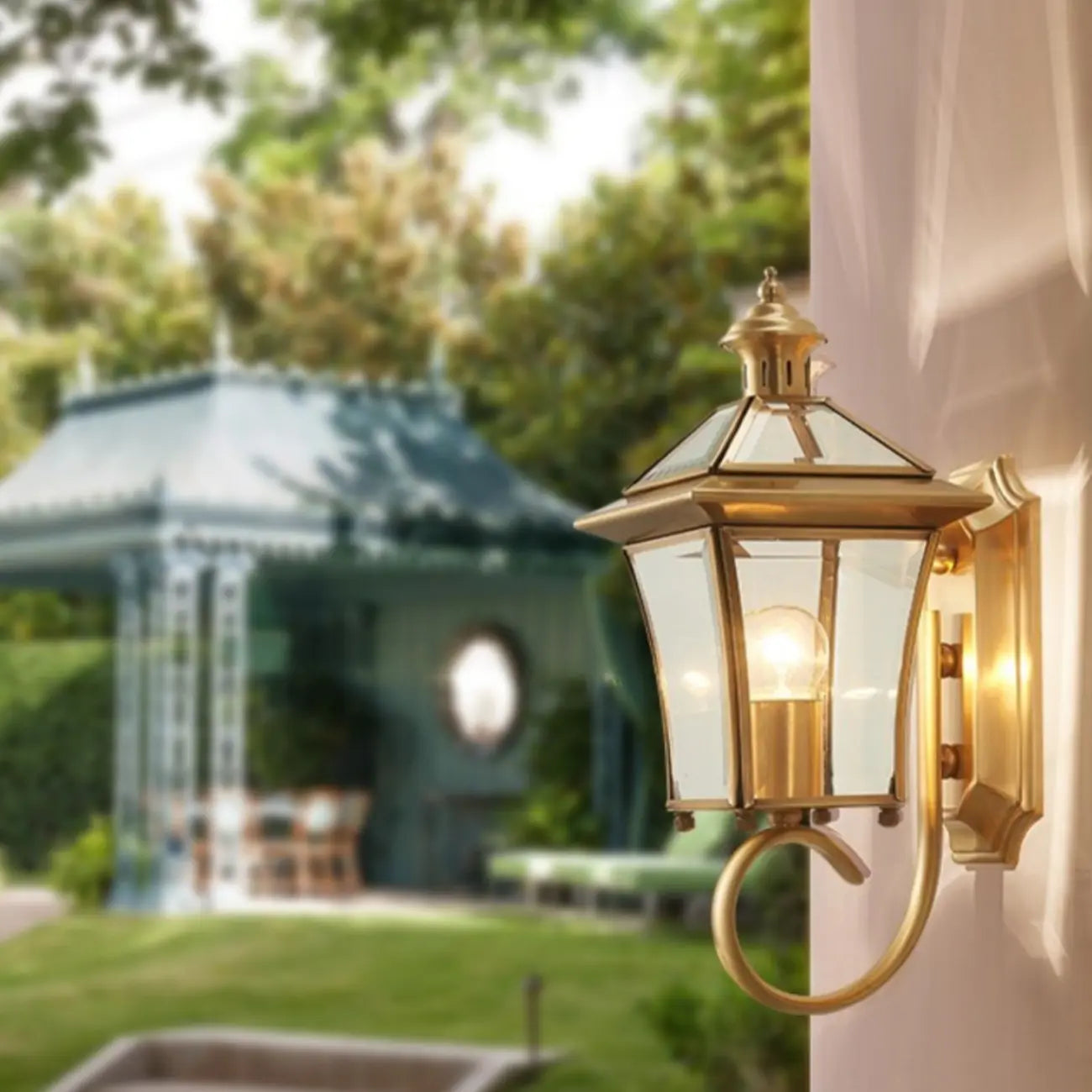 Applique murale vintage en laiton avec verre transparent pour extérieur