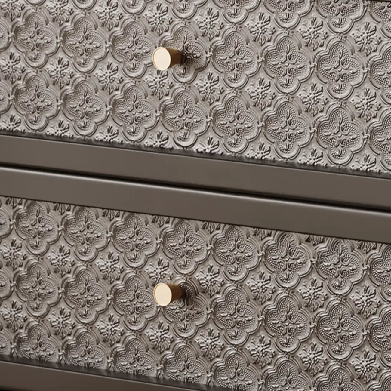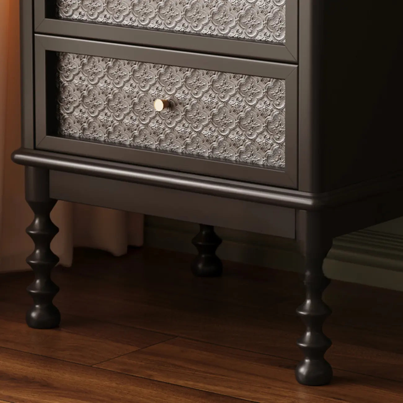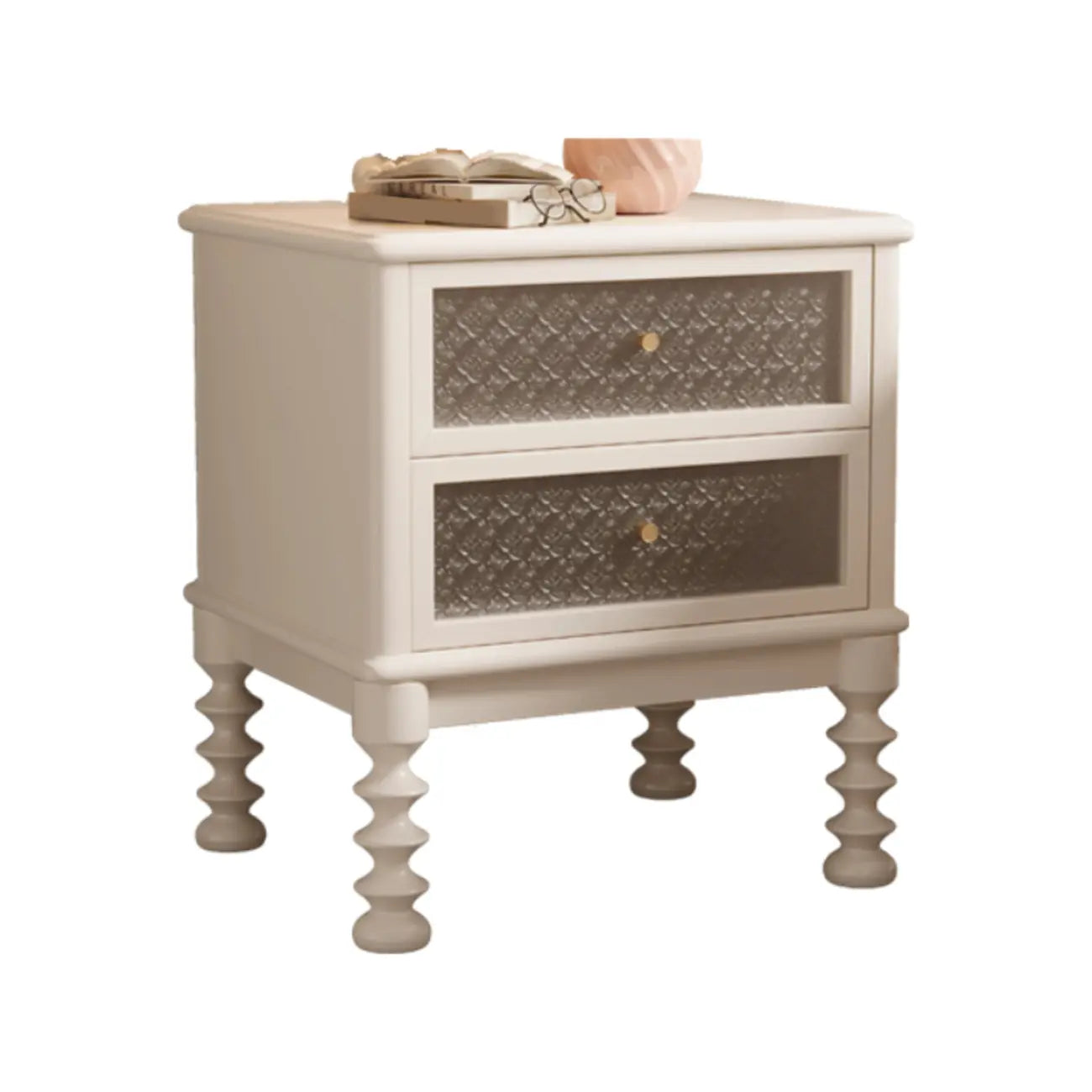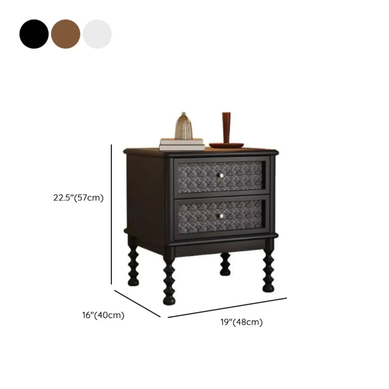 Table de chevet vintage en bois massif avec tiroirs et finition à motifs